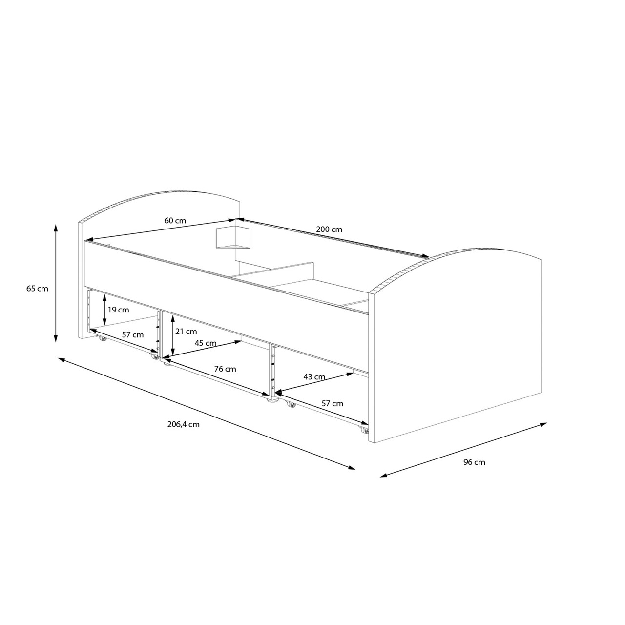 Pat Wijk, Bedora, 96x206.4x65 cm, PAL/plastic, stejar/alb