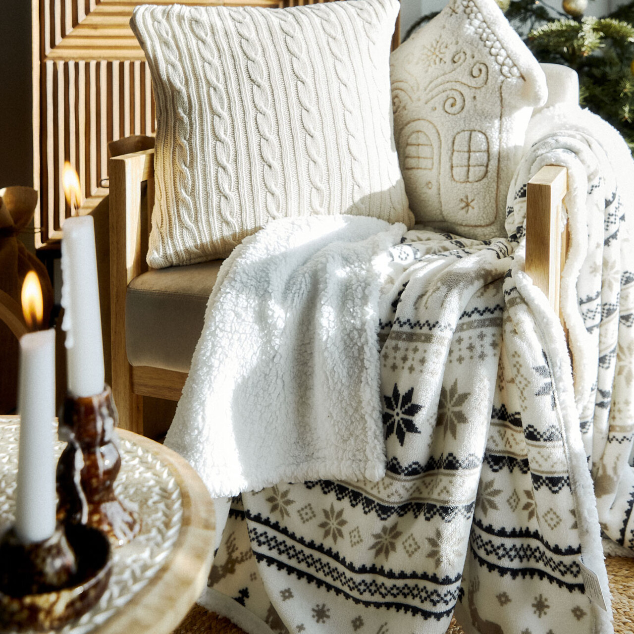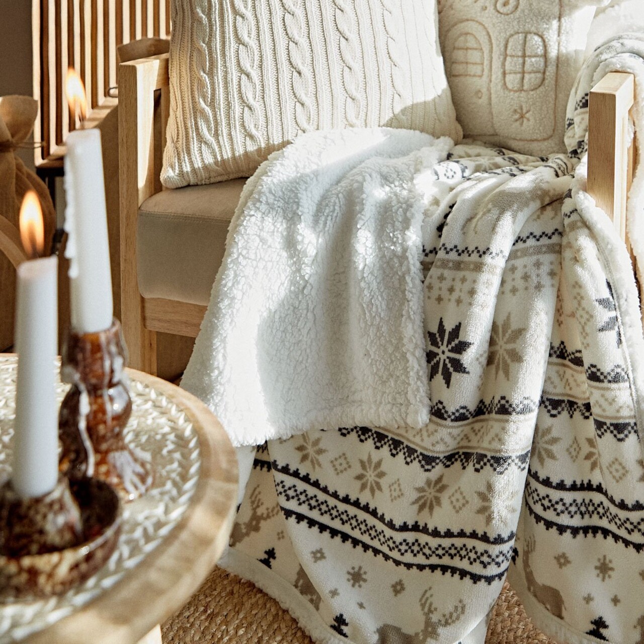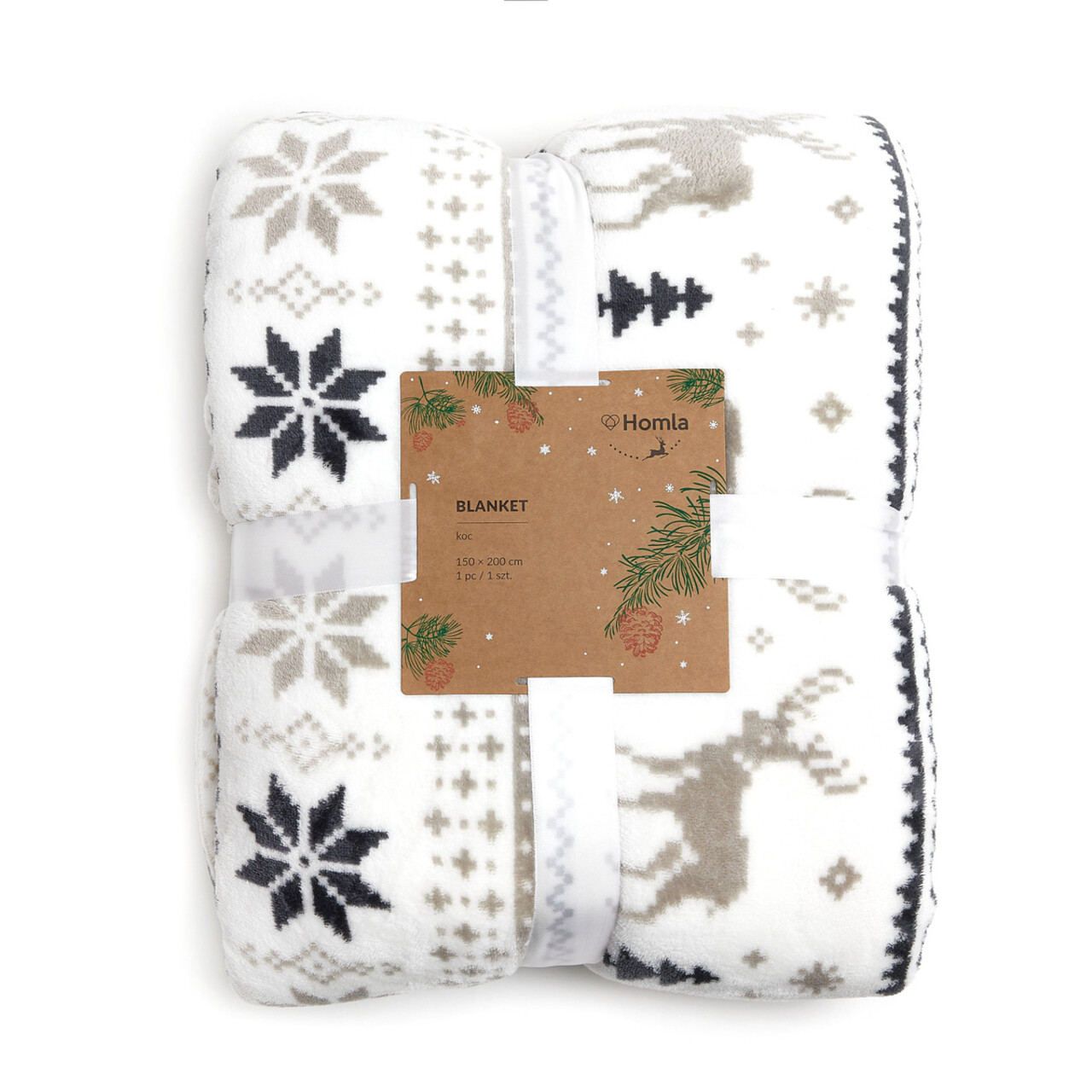 Patura de Craciun CRIMI se va potrivi foarte bine in sufragerie, dormitor sau camera copiilor, adaugand farmec si caldura interiorului. O puteti intinde pe canapea, pat sau fotoliu, unde va deveni un accent decorativ de Craciun.