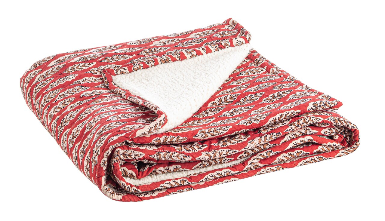 Patura cu doua fete Lorient W-Leaf, Bizzotto, 130x180 cm, bumbac/tesatura sherpa, rosu