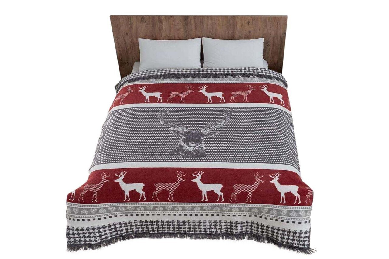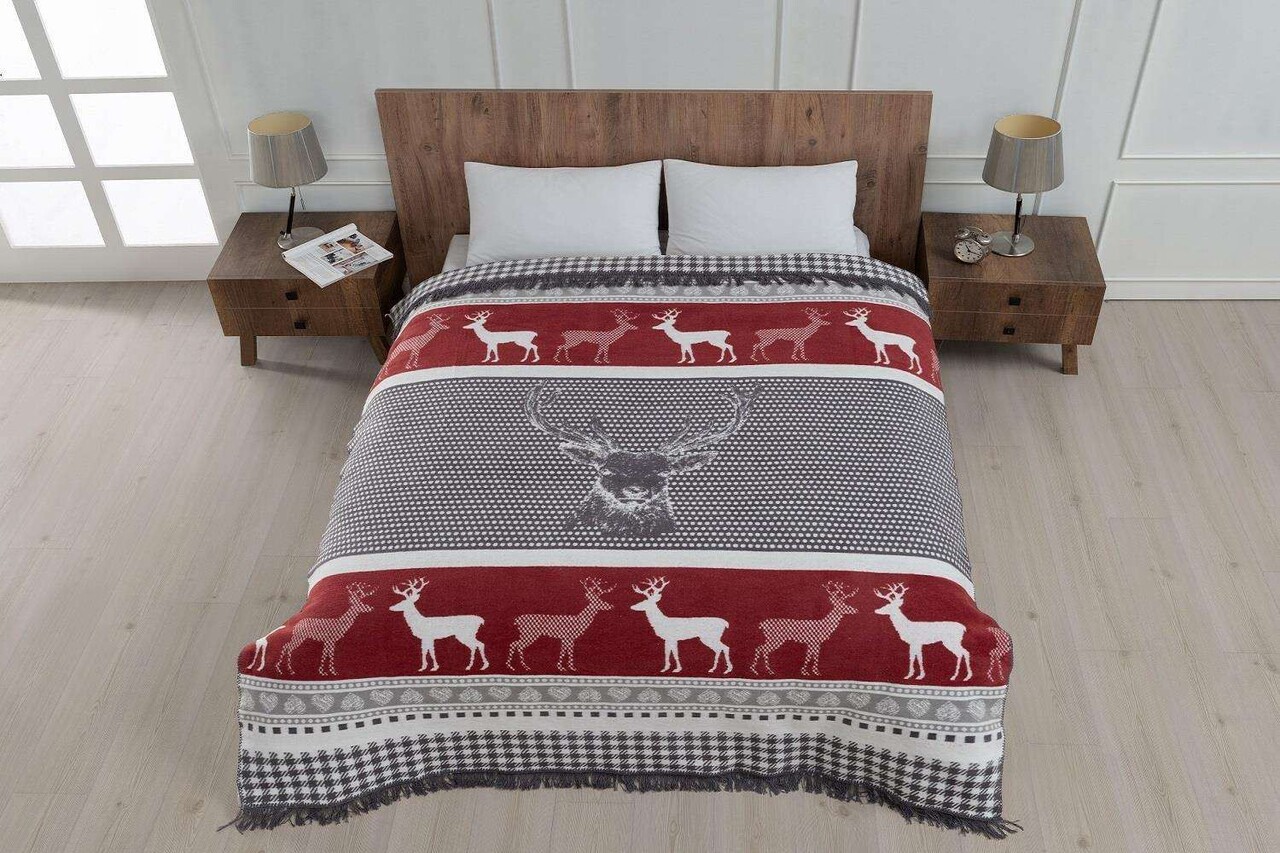 Patura Double, L'essentiel Maison, Peaceful, 60% bumbac/30% acril/10% poliester, Roșu / Alb / Gri