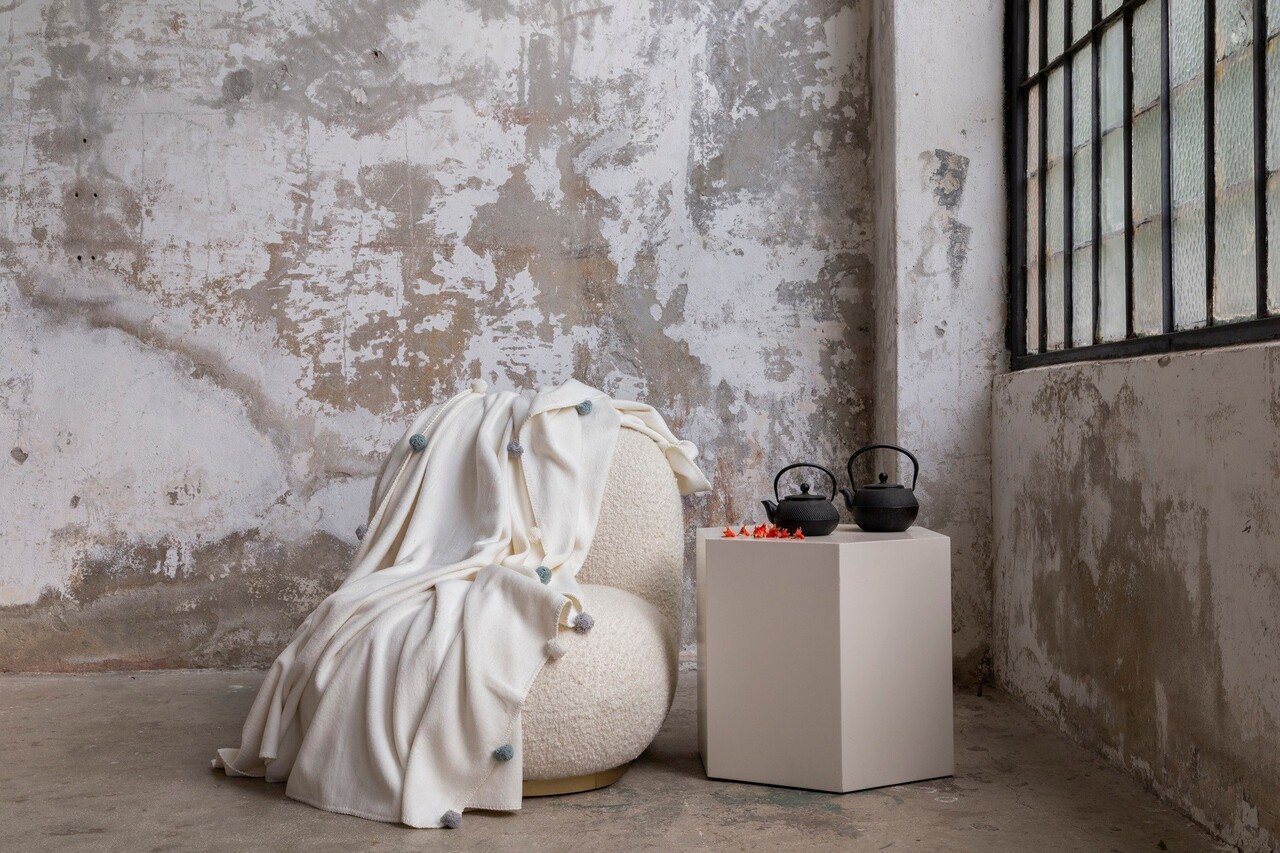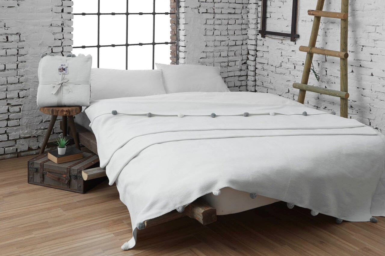 Patura Double, Pom Pom - Cream, Dolce Bonita Home, 60% bumbac/30% acril/10% poliester