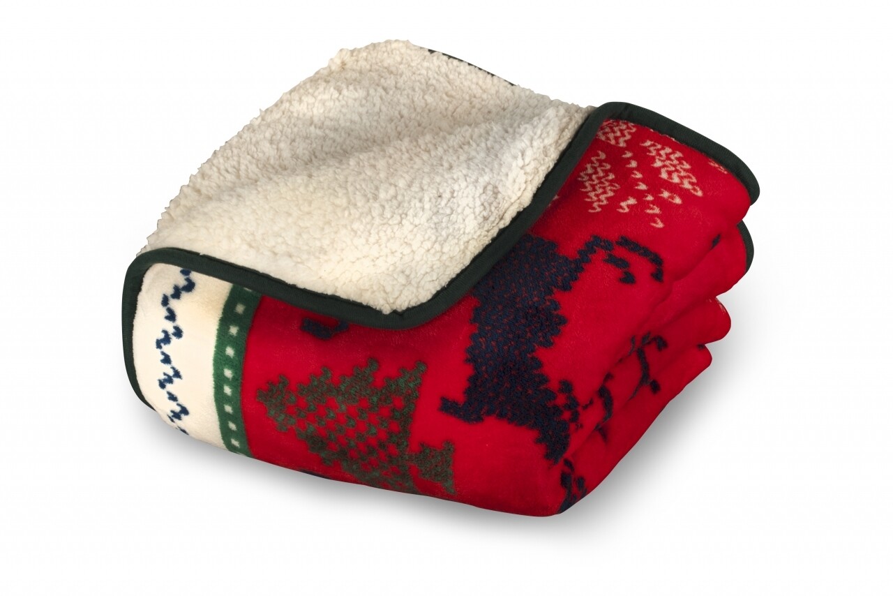 Patura fleece cu blanita 127x152 cm, 100% poliester, Ren