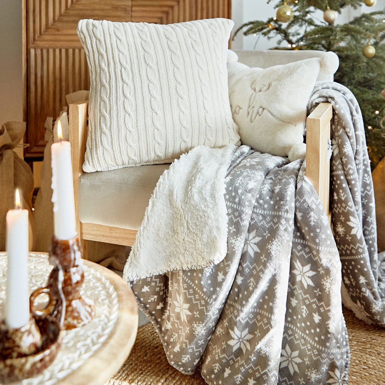 Patura de Craciun LUMI se va potrivi foarte bine in sufragerie, dormitor sau camera copiilor, adaugand farmec si caldura interiorului. O puteti intinde pe canapea, pat sau fotoliu, unde va deveni un accent decorativ de Craciun.
