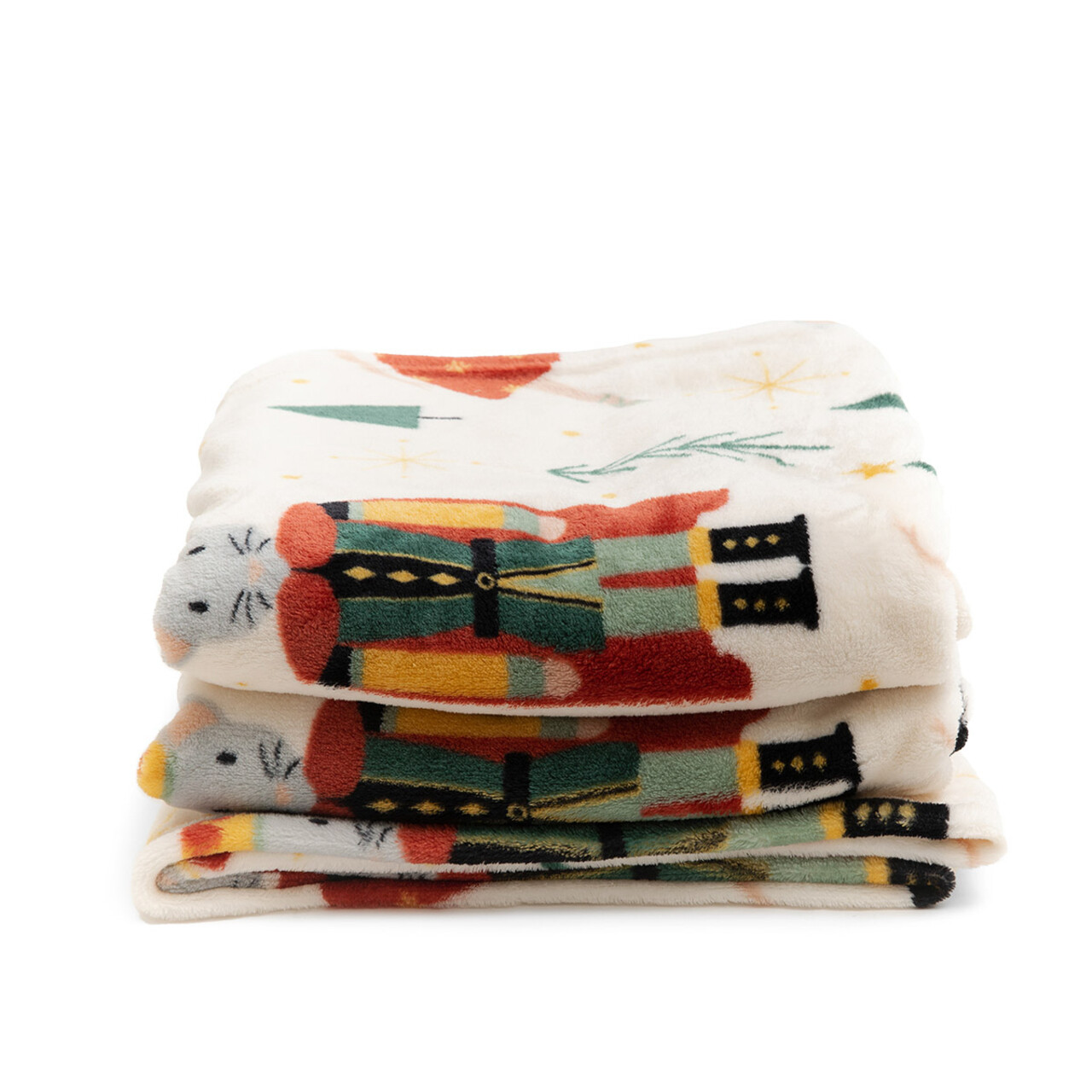 Patura de Craciun NUTCRACKER se va potrivi foarte bine in sufragerie, dormitor sau camera copiilor, adaugand farmec si caldura interiorului. O puteti intinde pe canapea, pat sau fotoliu, unde va deveni un accent decorativ de Craciun.