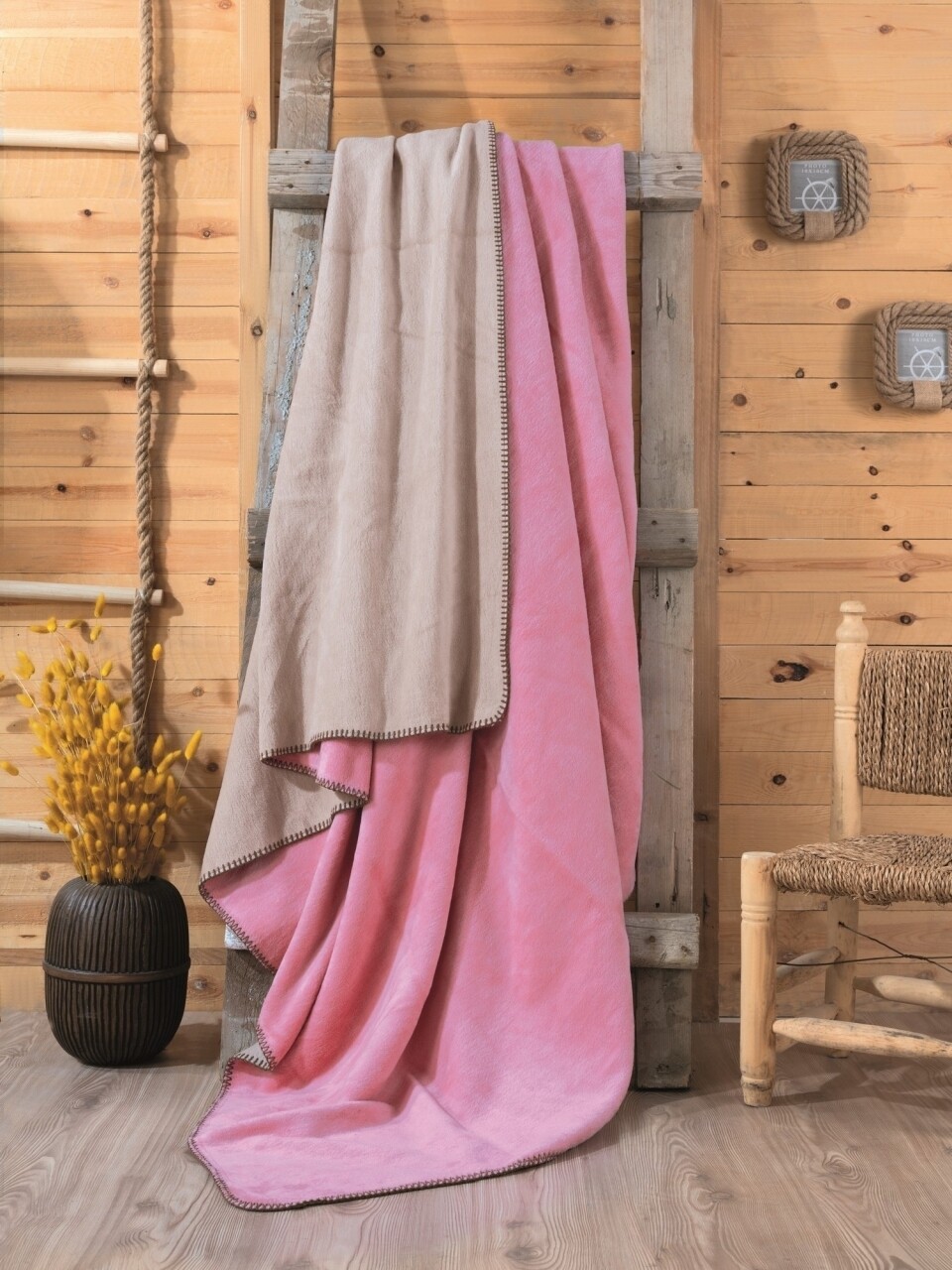 Patura pentru pat dublu din bumbac si acrylic, 200x200 cm, Cotton Box, roz/bej