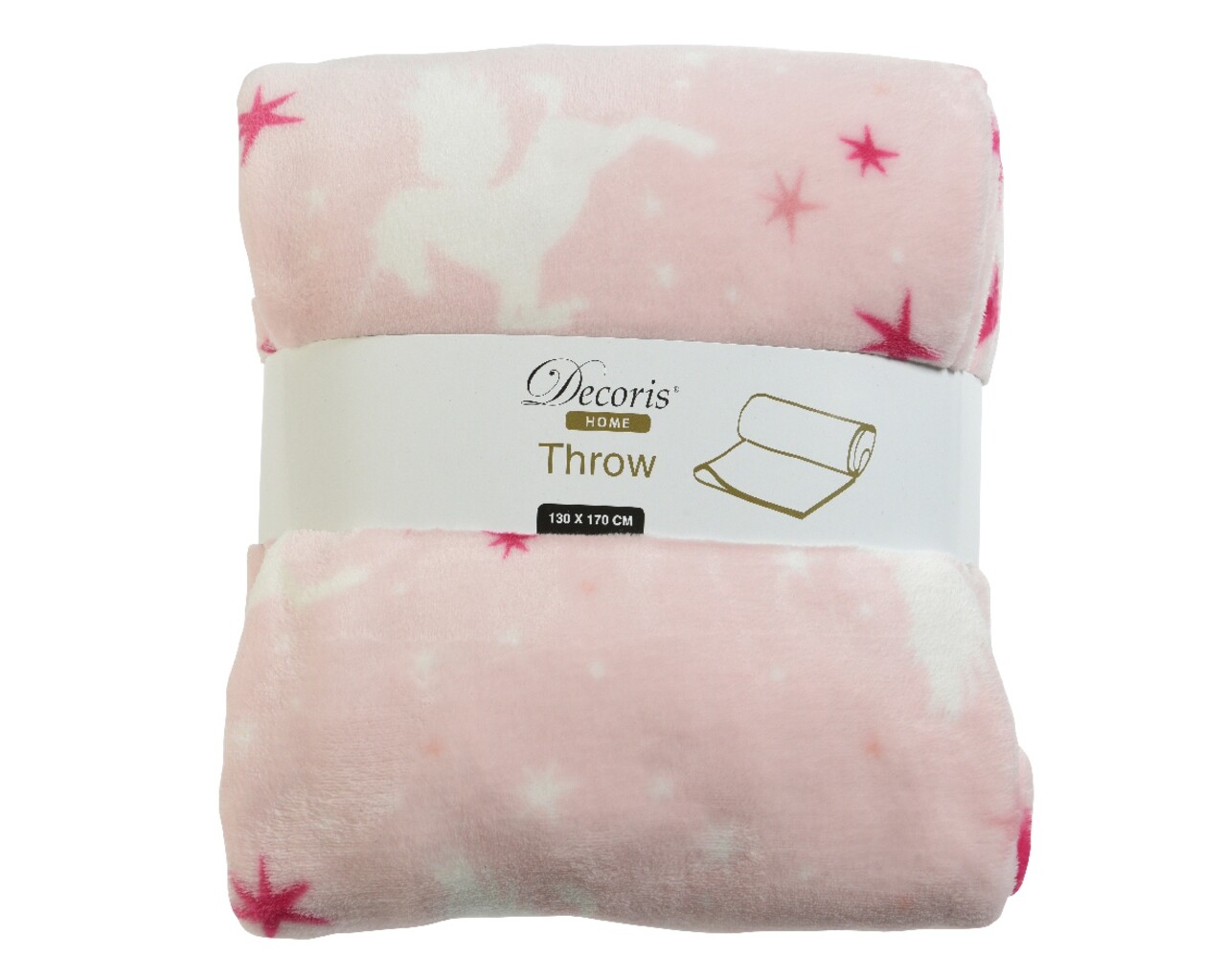 Patura pufoasa cu unicorni, Decoris, 130x170 cm, 260 gsm, poliester, roz