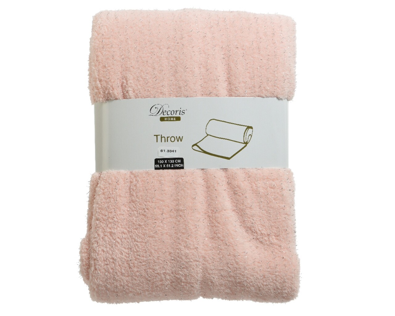 Patura pufoasa, Decoris, 130x150 cm, 260 gsm, poliester, roz/argintiu
