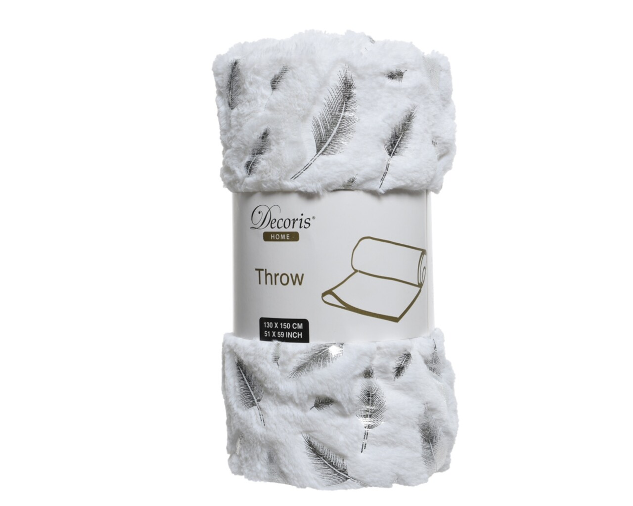 Patura pufoasa Feathers, Decoris, 130x150 cm, 280gsm, poliester, alb/argintiu