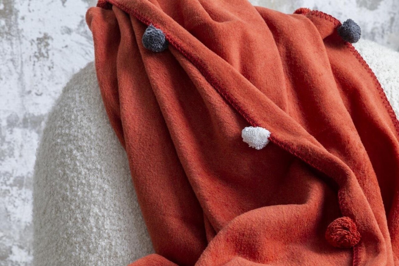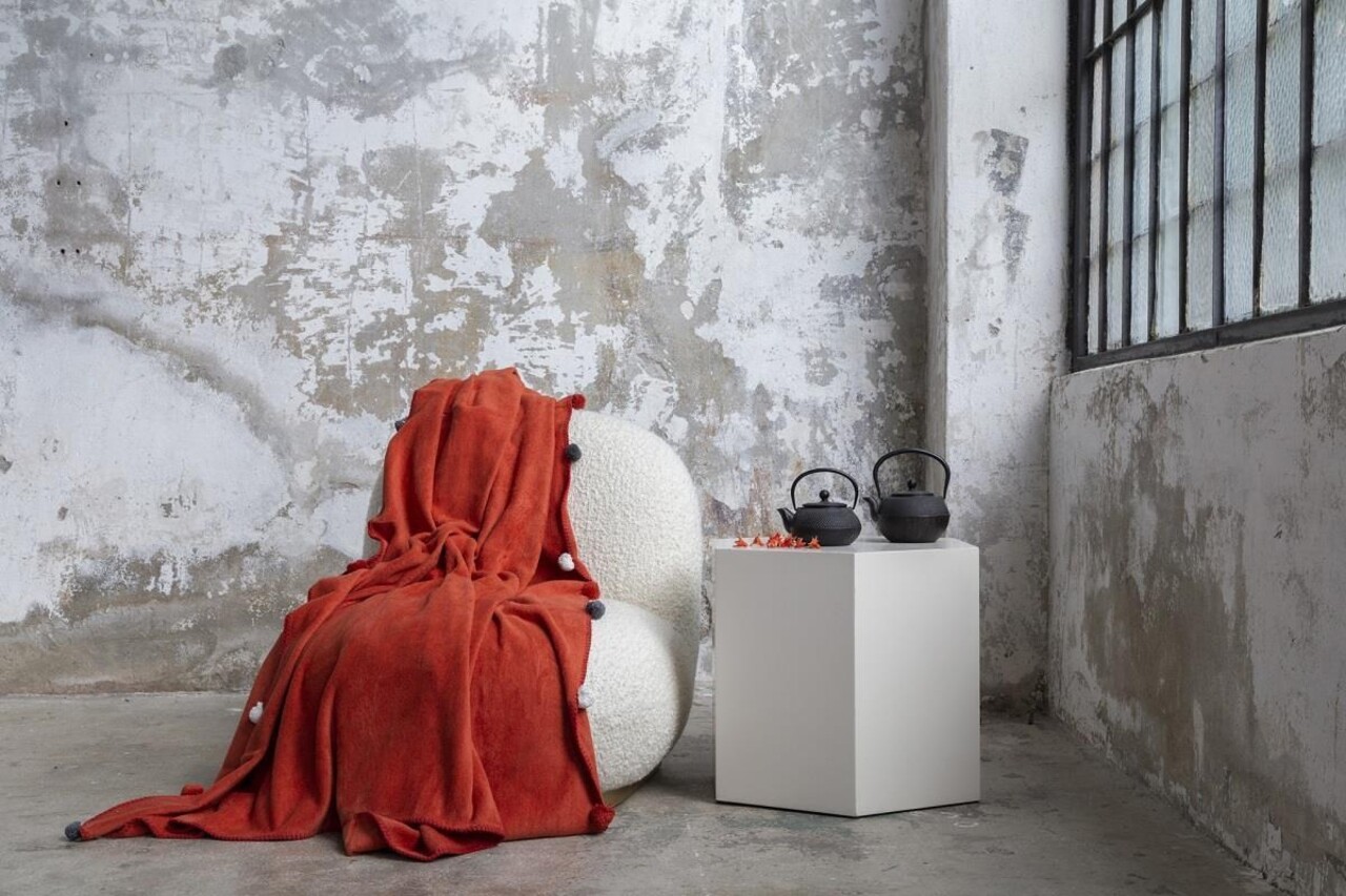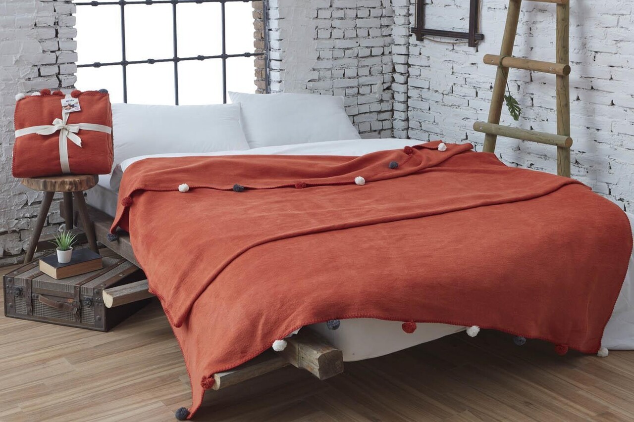 Patura Single, Pom Pom - Tile Red, Dolce Bonita Home, 60% bumbac/30% acril/10% poliester