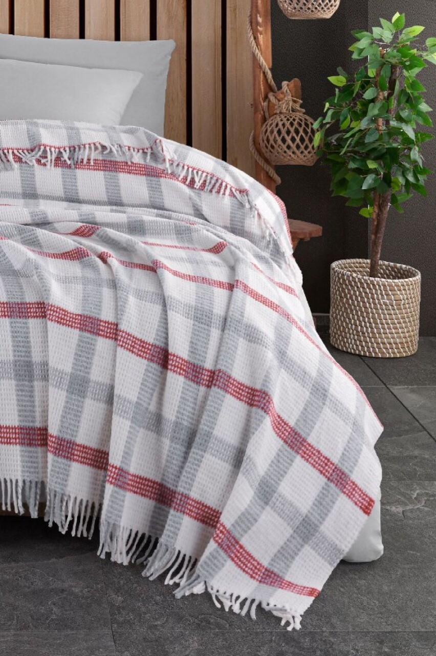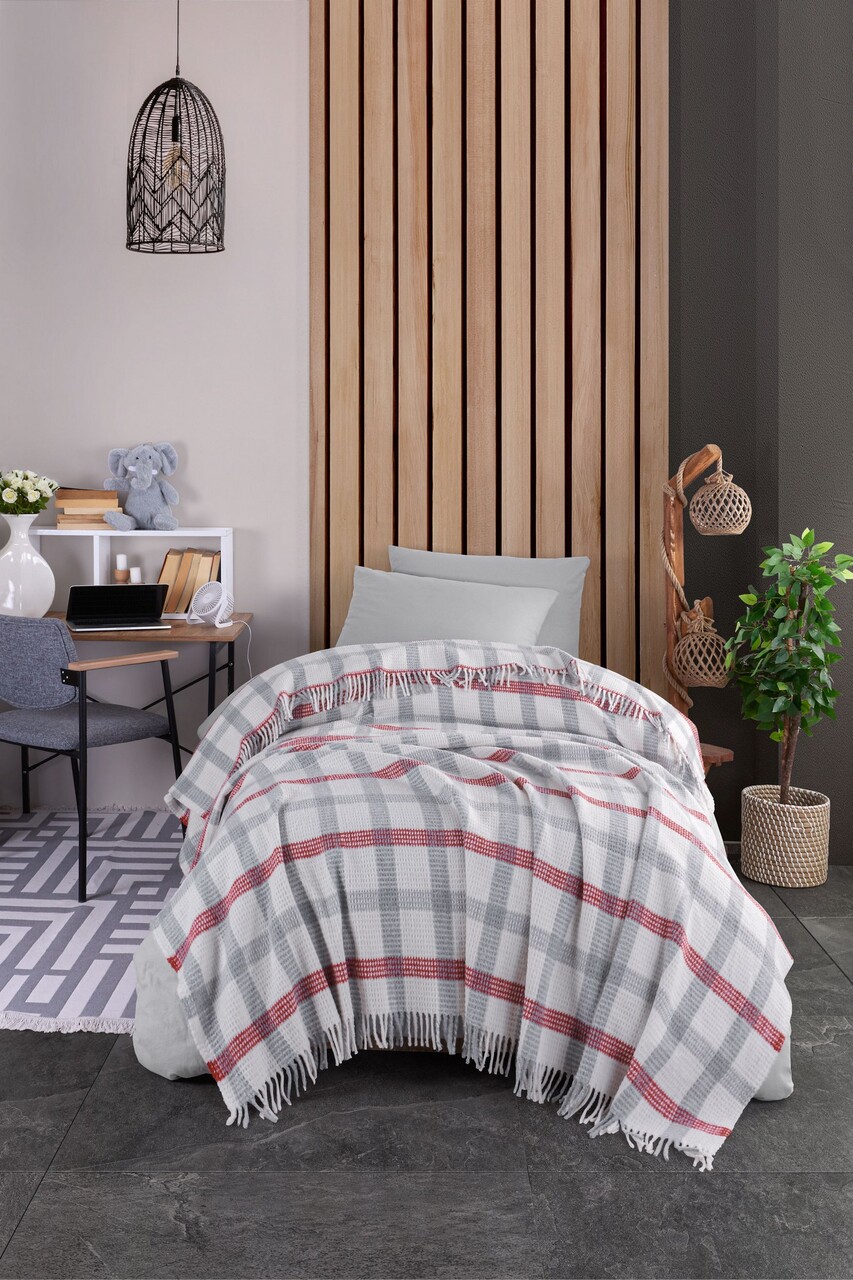 Patura Single, Warm Soft - Grey, Red, Eponj Home, 70% bumbac/30% acril