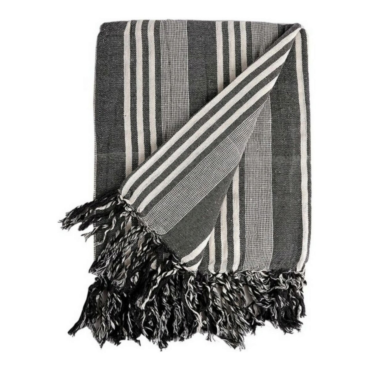 Patura Stripes, Gift Decor, 205 x 235 cm, amestec bumbac, alb/gri inchis