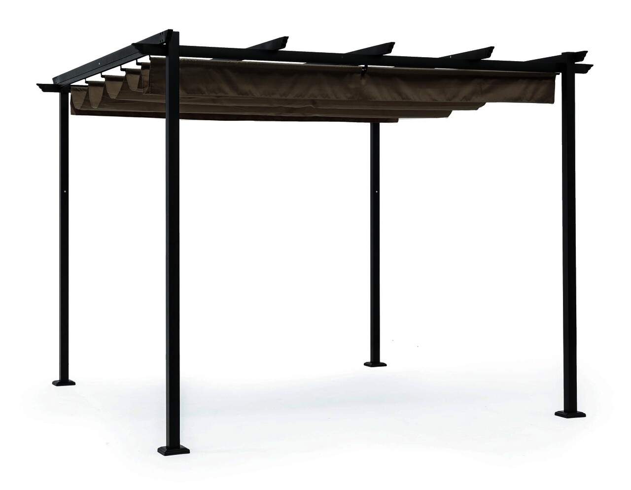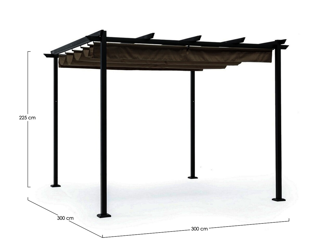 Pavilion pentru gradina cu prelata glisanta Dynamic Gazebo, Bizzotto, 300 x 300 x 225 cm, otel/poliester/poliuretan, antracit/grej