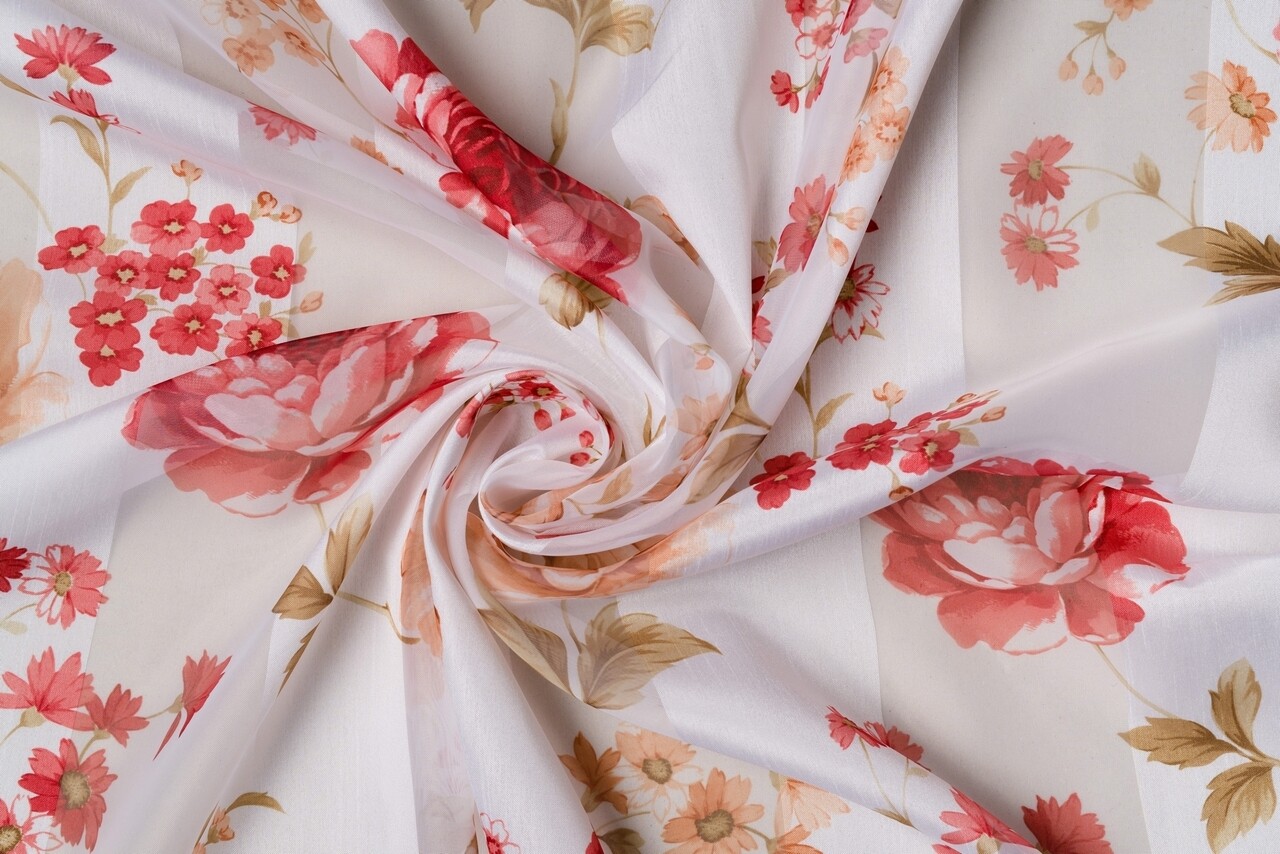 Perdeaua Fiore invioreaza atmosfera intregii amenajari, gratie florilor delicate uniform intinse pe toata suprafata materialului.