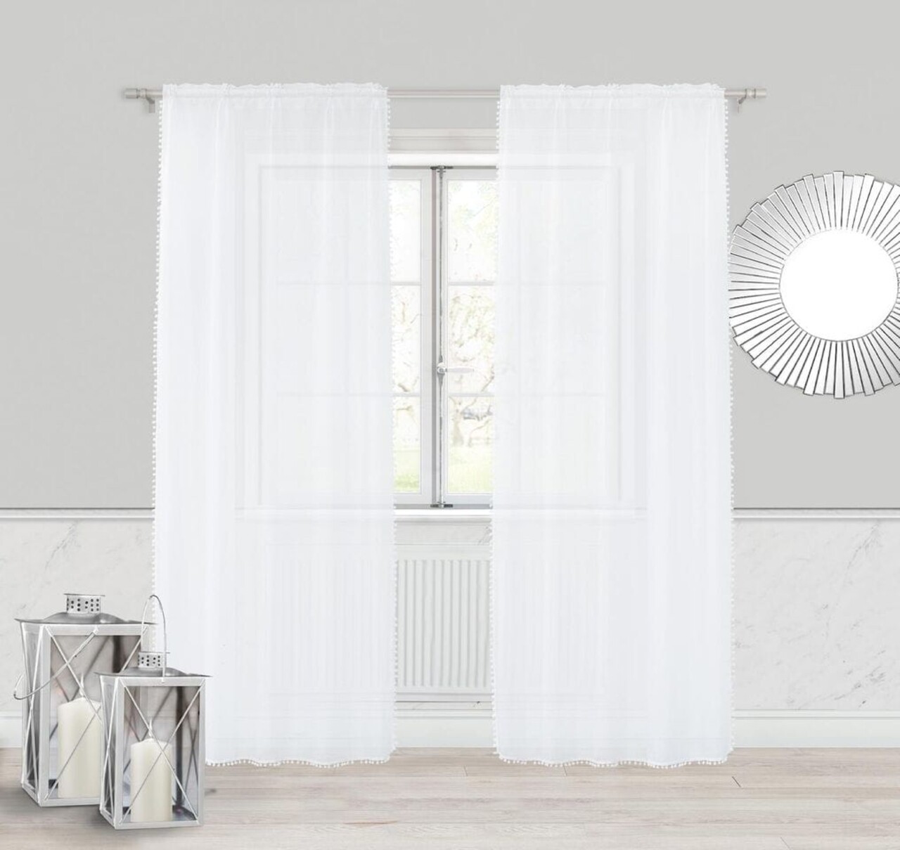 Perdea Pompoo Biala, Fashion Goods, 140x250, poliester, alb