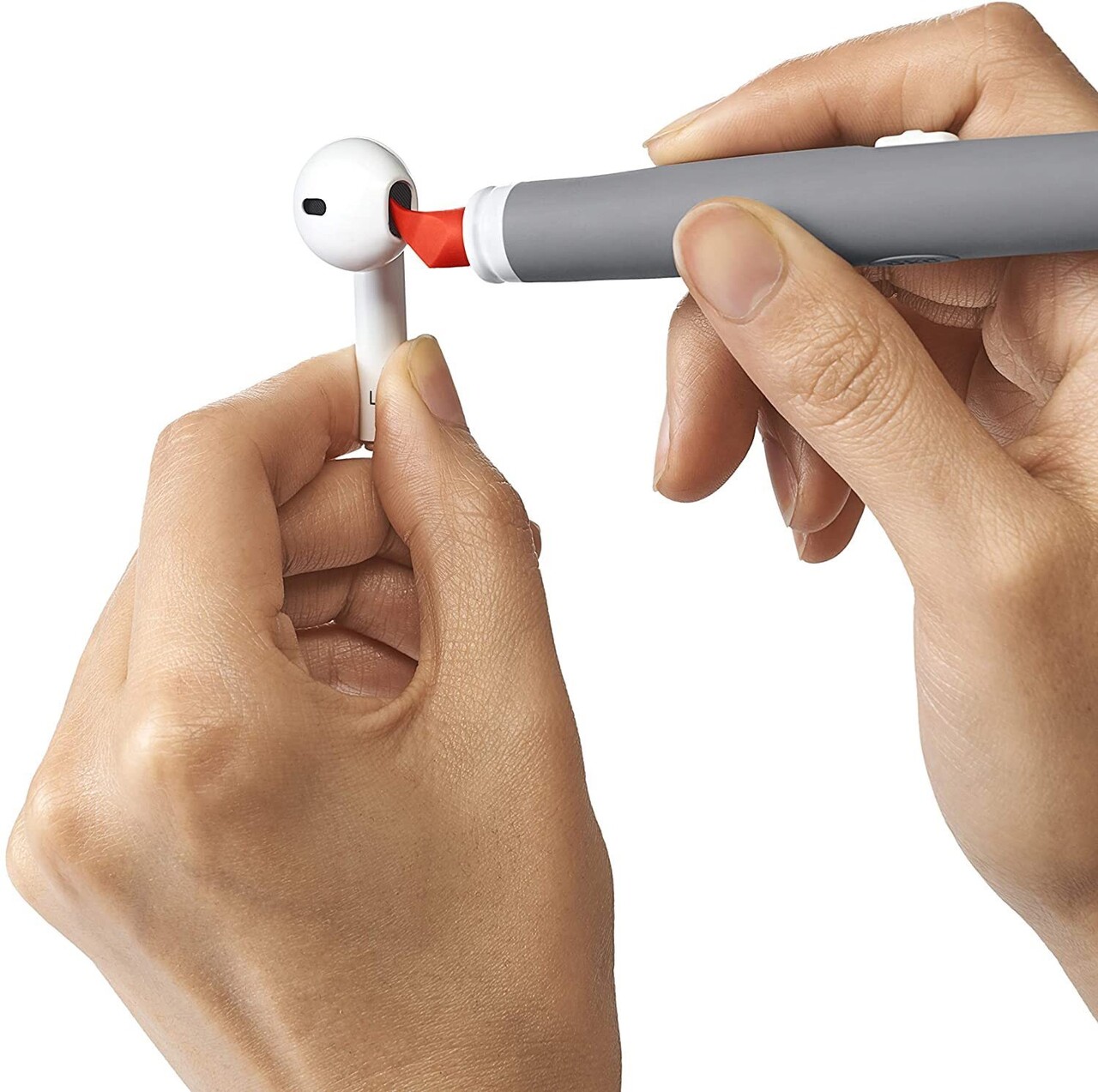 Capatul ingust din silicon poate fi folosit pentru a sterge murdaria adunata in zonele inguste din jurul tastelor si din colturile ecranelor, La care se ajunge greu in mod obisnuit.