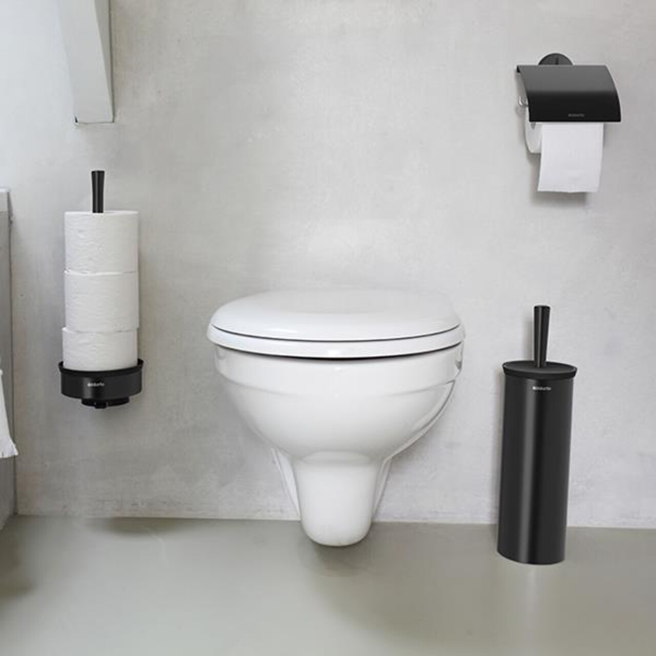 Perie de toaleta cu suport, Brabantia, Profile Black, 12.5x11.5x43 cm, otel, negru