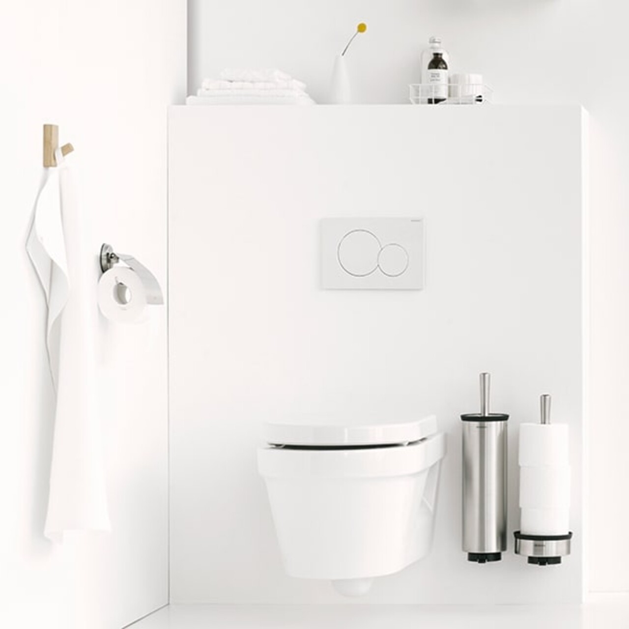Perie de toaleta cu suport, Brabantia, Profile Matt Steel, 12.5x11.5x43 cm, otel, argintiu