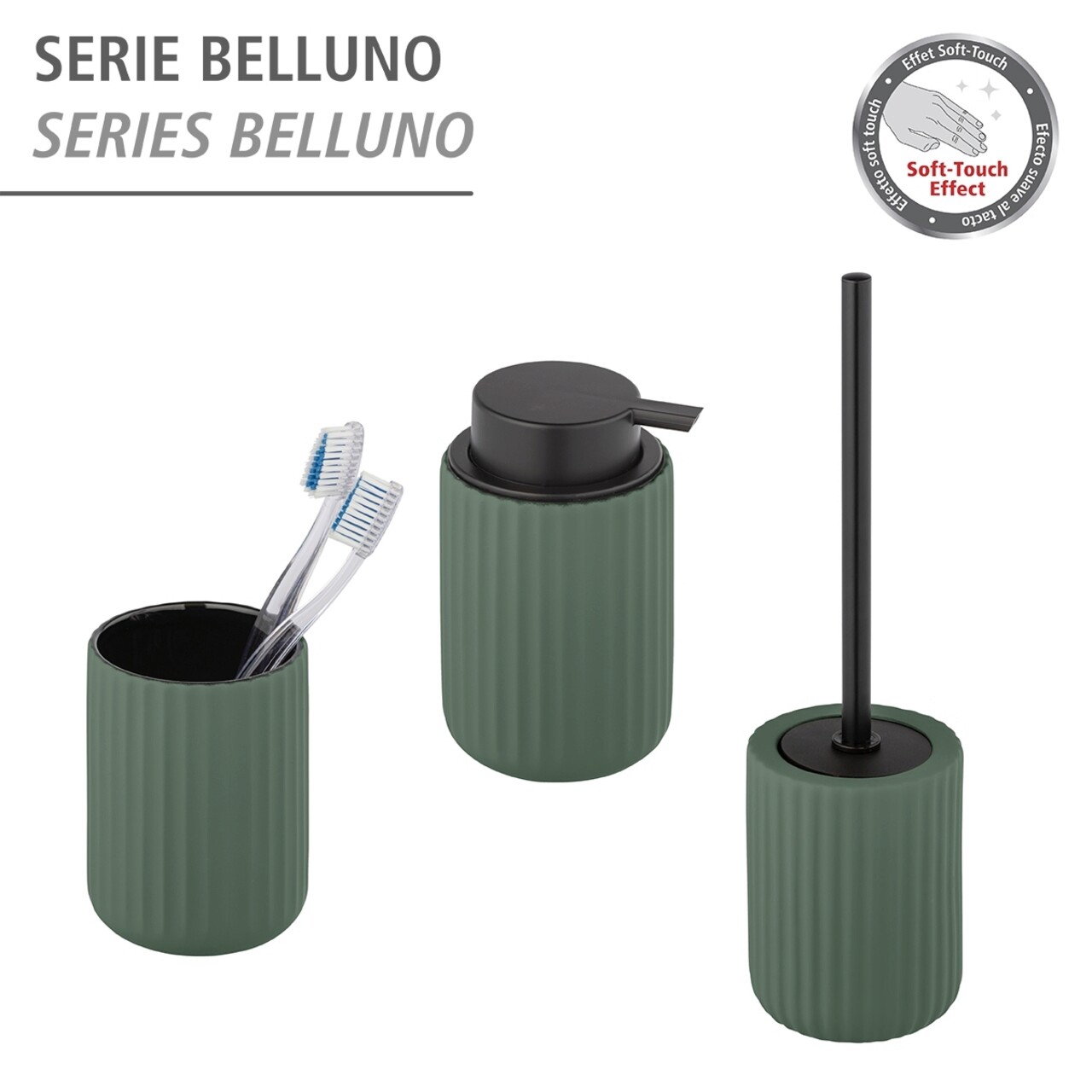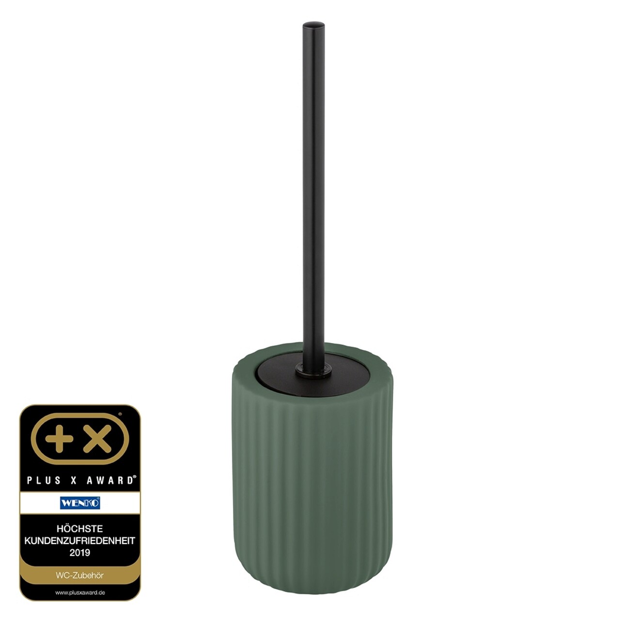 Perie pentru toaleta cu suport Belluno, Wenko, 11.5x42 cm, ceramica/inox, verde/negru