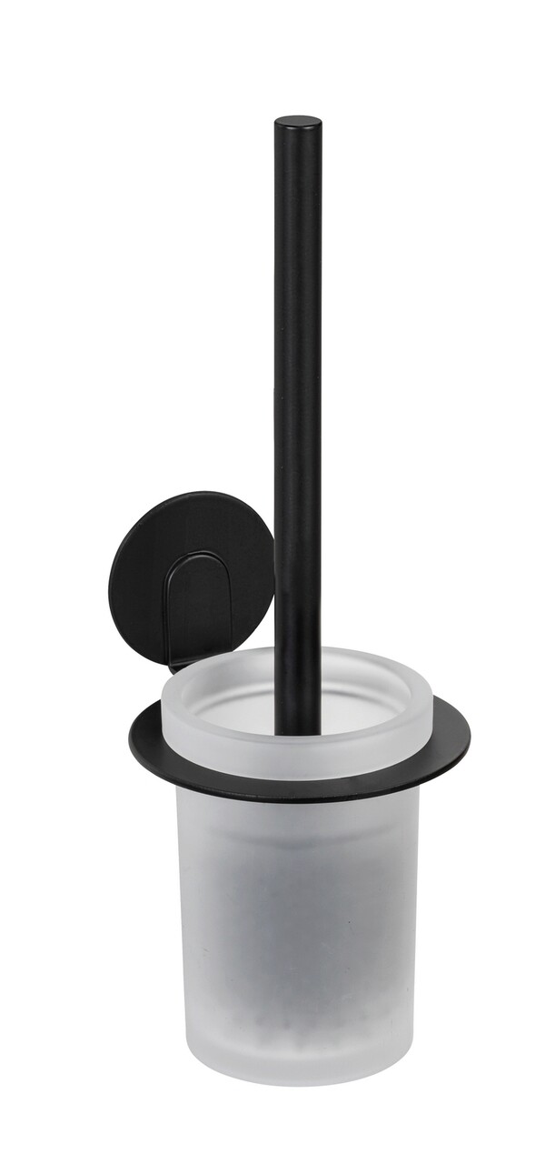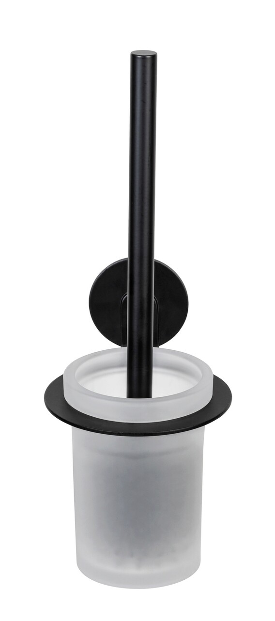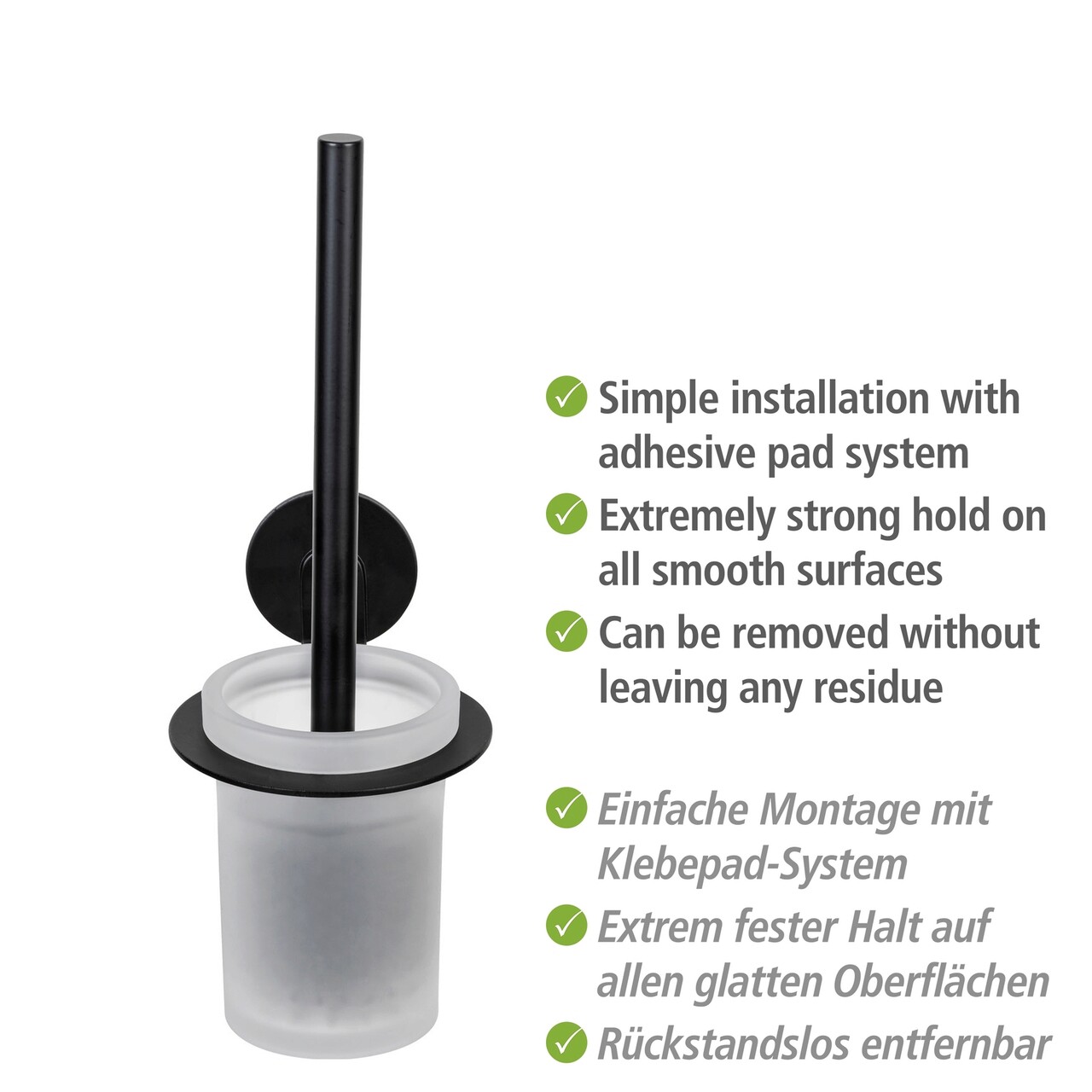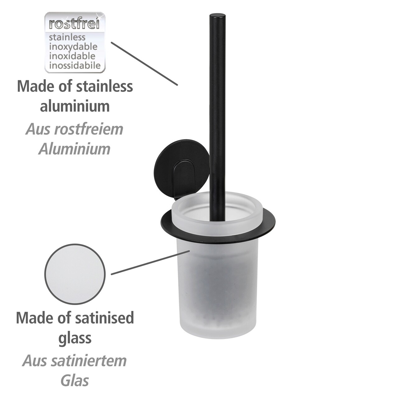 Perie pentru toaleta cu suport Bivio, Wenko, 12x14x34.5 cm, aluminiu/sticla, negru/alb