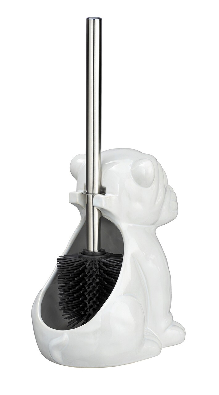 Perie pentru toaleta cu suport Bulldog, Wenko, 12x15.5x19.5 cm, ceramica, alb