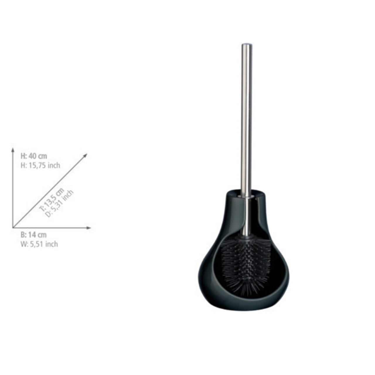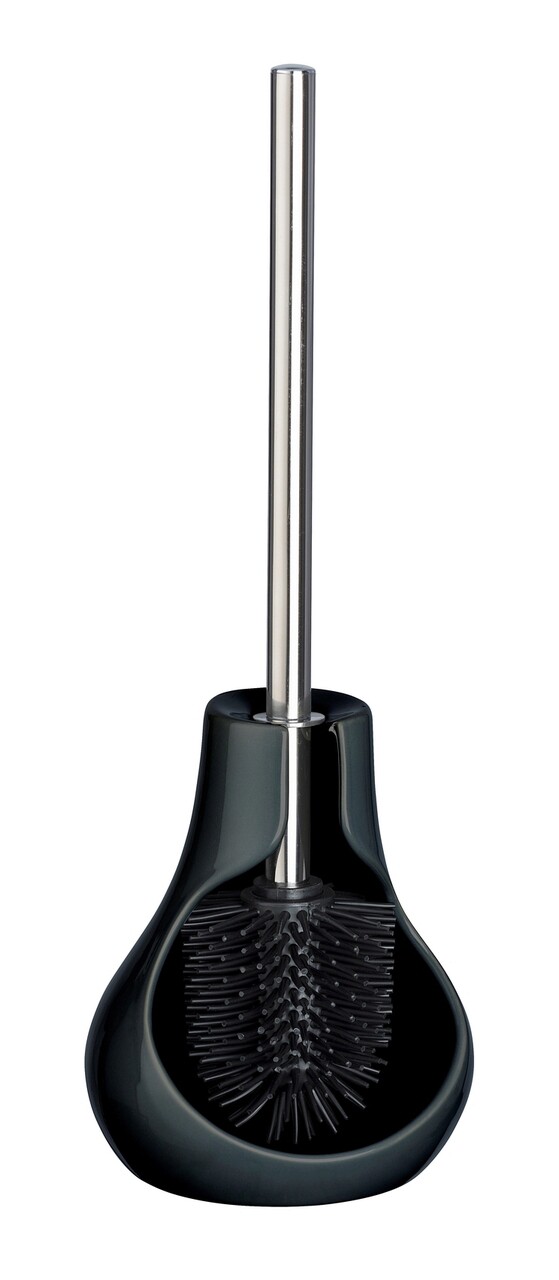 Perie pentru toaleta cu suport Drop Neo, Wenko, 14x13.5x40 cm, ceramica/silicon, negru