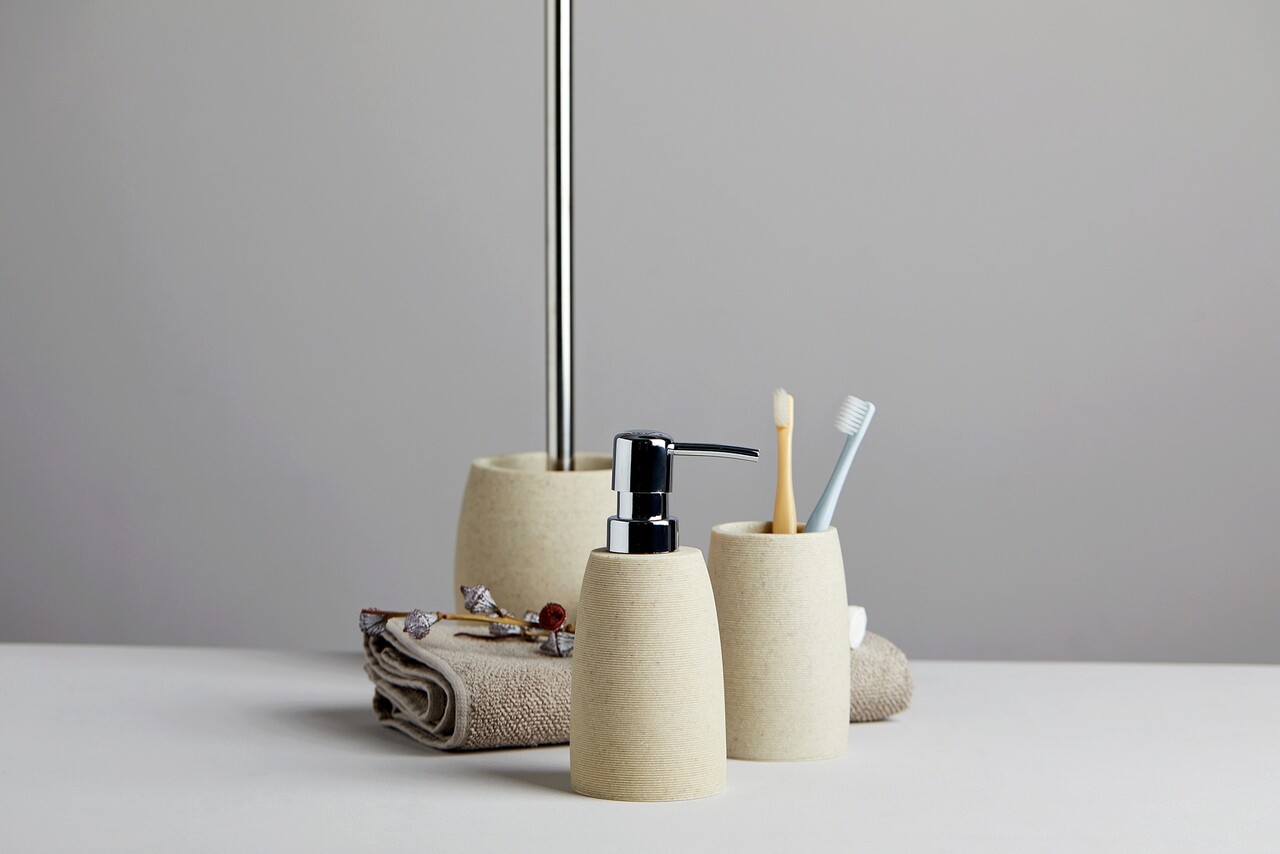 Perie pentru toaleta cu suport Goa, Wenko, 11.8x38.5 cm, polirasina, bej