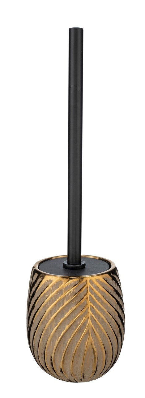 Perie pentru toaleta cu suport Idro, Wenko, 10x39 cm, ceramica/inox, auriu/negru