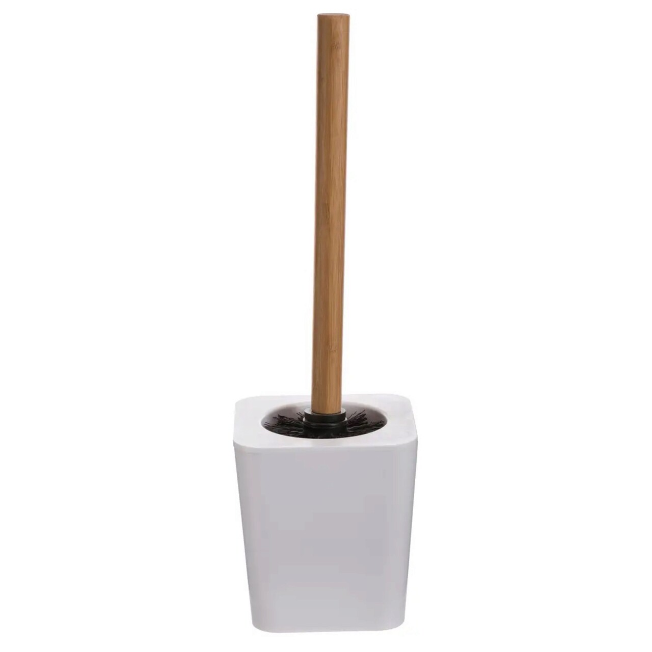 Perie pentru toaleta cu suport Natureo, 5five, 11.6 x 11.6 x 38 cm, bambus, alb