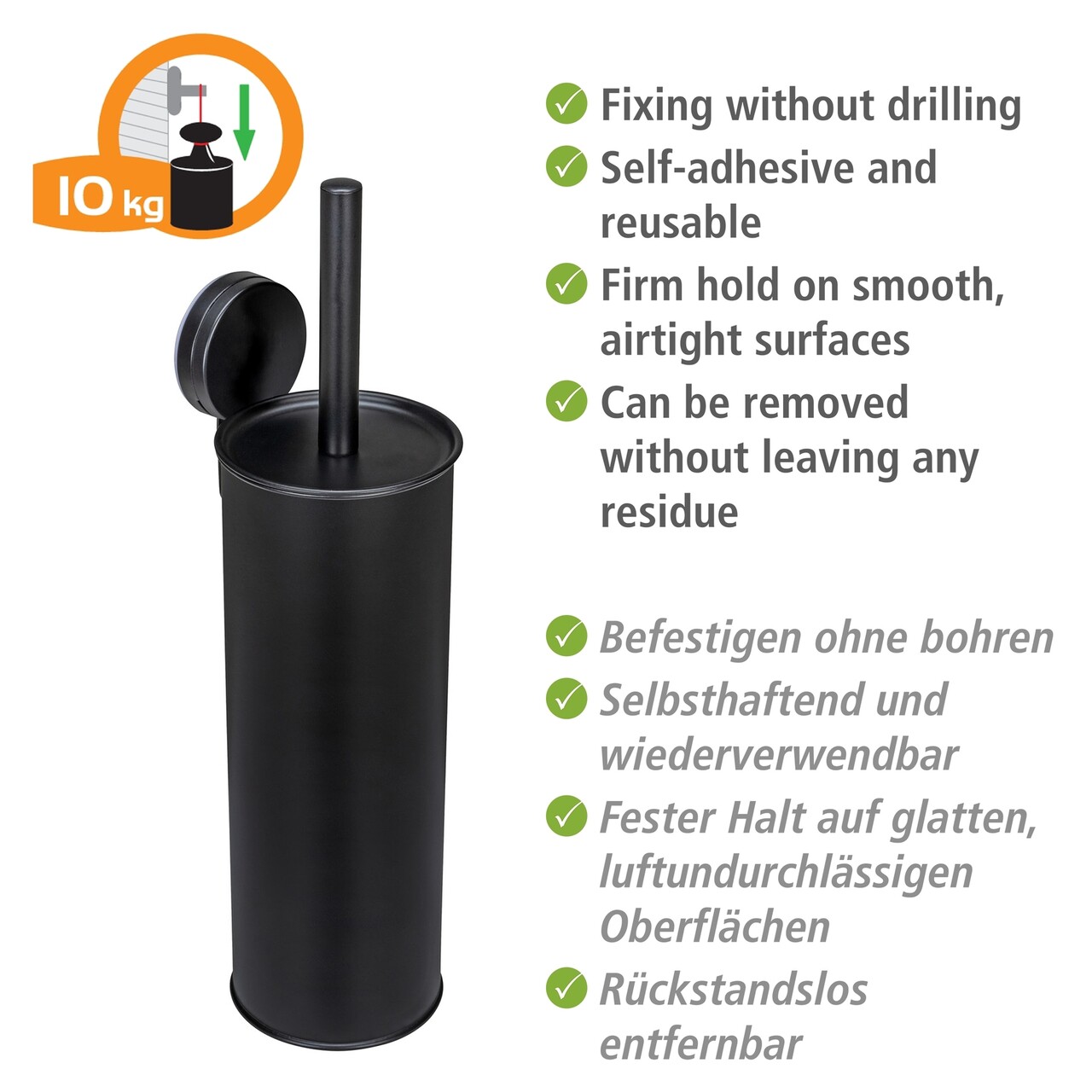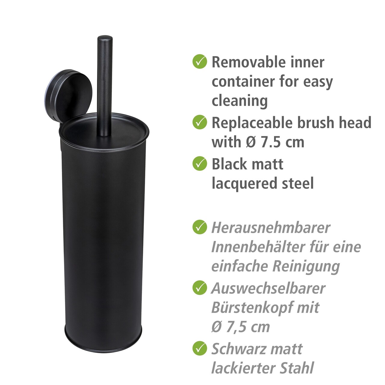 Perie pentru toaleta cu suport Pavia, Wenko, 11.5x12x40 cm, inox/polipropilena, negru
