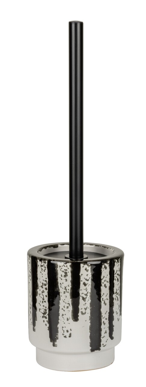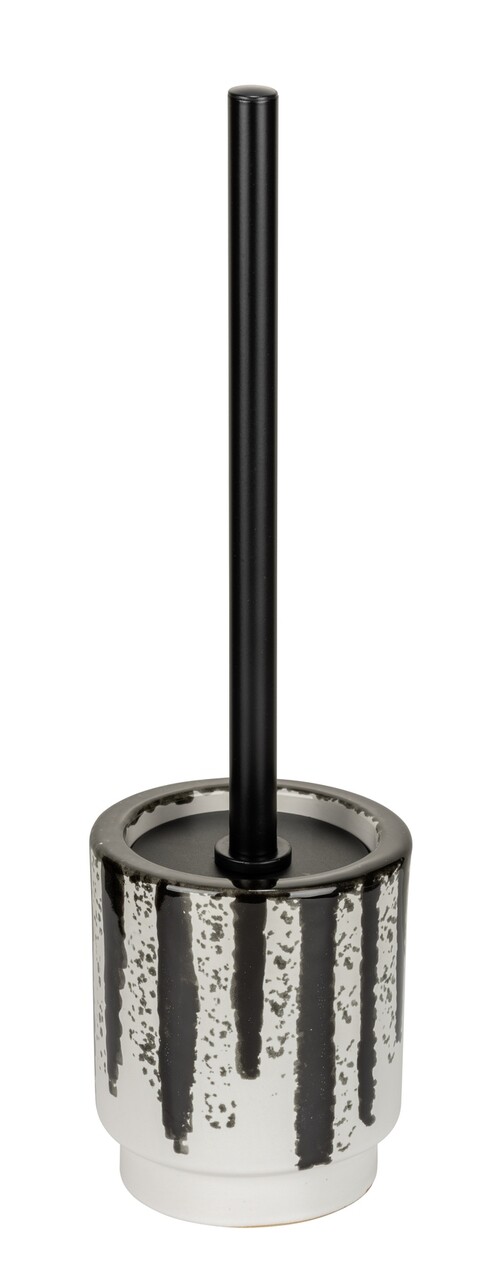 Perie pentru toaleta cu suport Subiza, Wenko, 11x39 cm, ceramica/inox, alb/negru