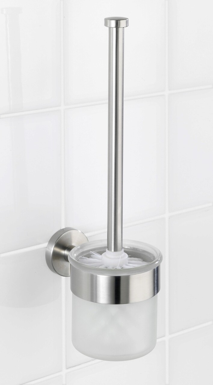 Perie pentru toaleta, Wenko, Bosio, 10 x 14 x 35 cm, inox/sticla, gri