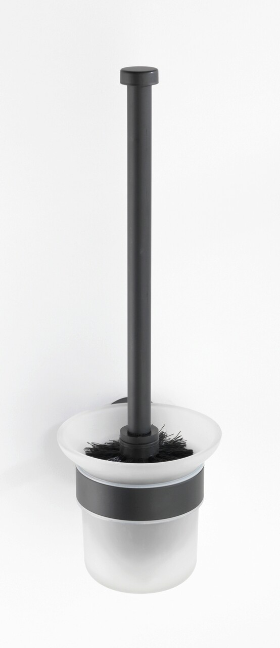 Perie pentru toaleta, Wenko, Bosio, 10 x 14 x 35 cm, inox/sticla, negru/alb