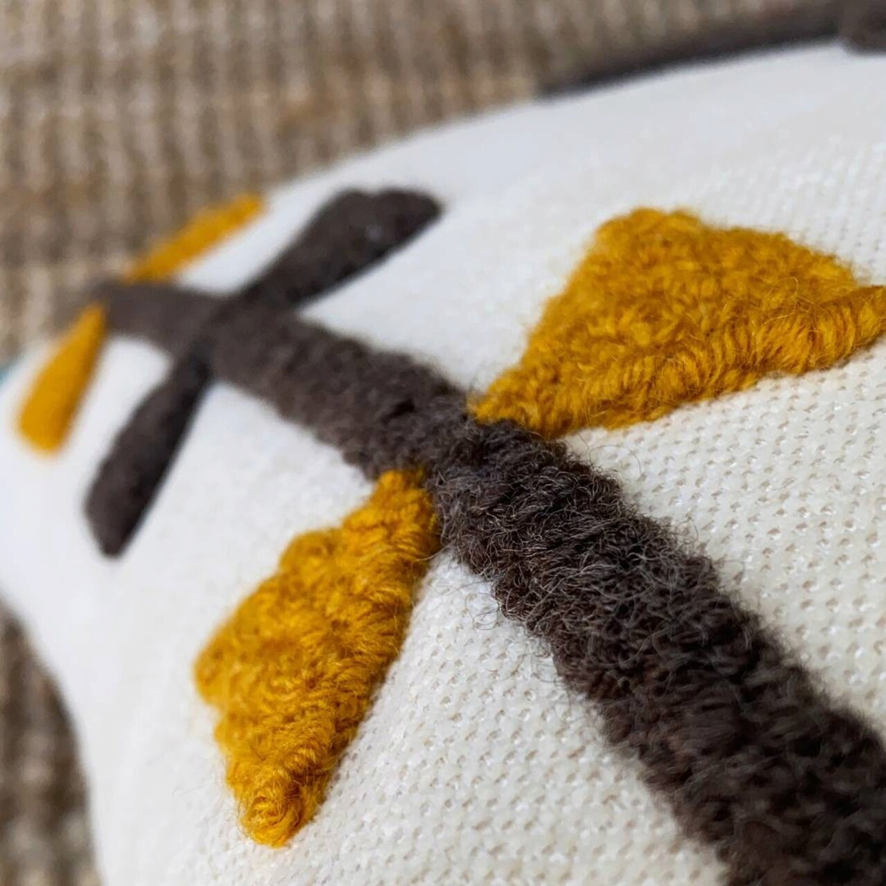 Perna, Ani Punch Pillow With İnsert, 43x43 cm, Material: 20% in, 80% poliester, Muștar / Turcoaz / Gri închis
