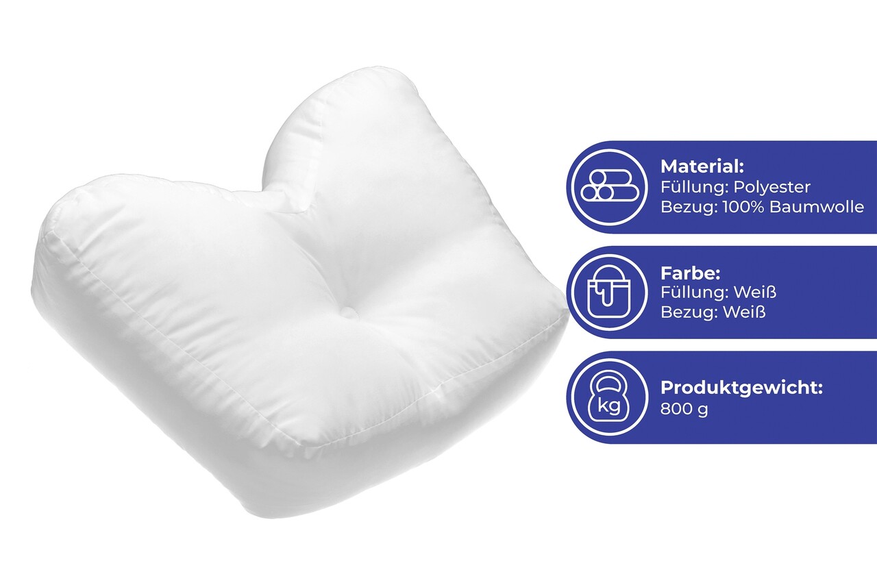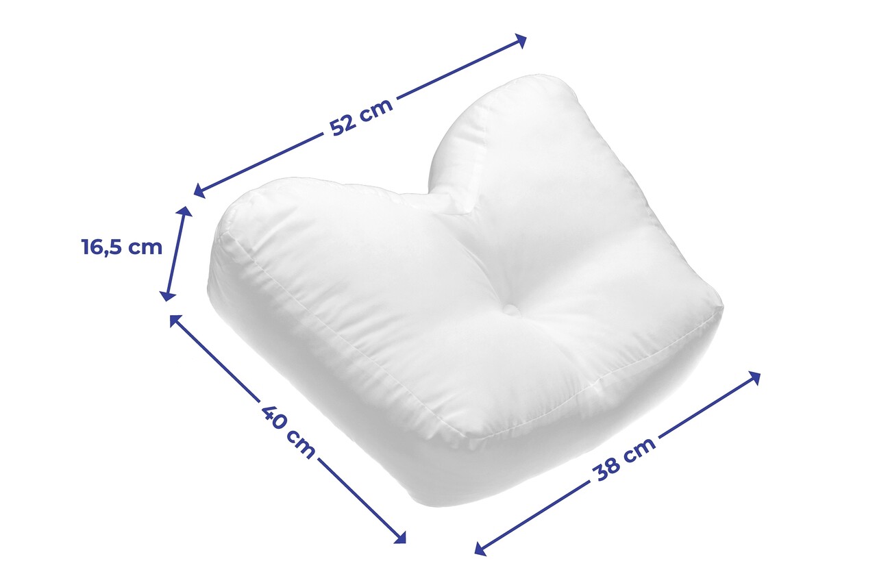 Perna pentru dormit pe lateral are forma ergonomica si este potrivita pentru un somn odihnitor si linistit. Aceasta perna de dormit pe lateral este o adevarata inovatie: relaxeaza umarul, bratul nu mai amorteste imediat, urechea sta confortabil. Umplutura este din poliester iar fata de perna din bumbac, inaltimea este de 16.5 cm iar greutatea 800 g.