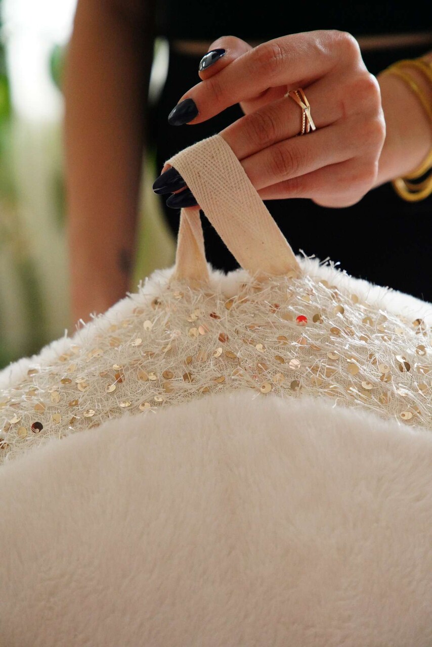 Perna de podea, Pelus, 51x51x18 cm, 75% RECYCLED POLYESTER/15% POLYESTER/10% COTTON, Ecru