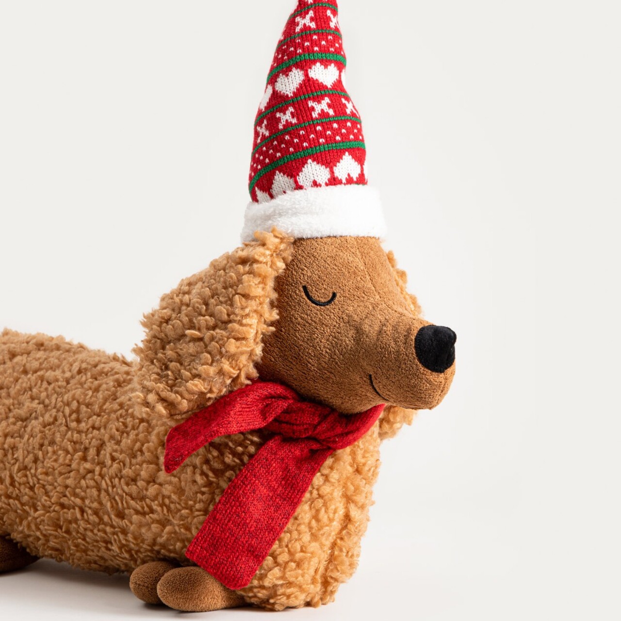 Perna BASSOTTO in forma de caine Teckel este moale si placuta la atingere. Este perfecta ca perna decorativa, jucarie de plus sau ca suport pentru odihna. Cu ea puteti decora canapeaua din sufragerie, patul din dormitor sau camera copiilor. Este o alegere interesanta pentru un cadou de Craciun.