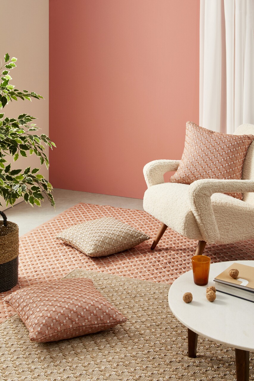 Perna decorativa Bhajan, Bizzotto, 45 x 45 cm, polipropilena/poliester, lucrata manual, portocaliu/roz