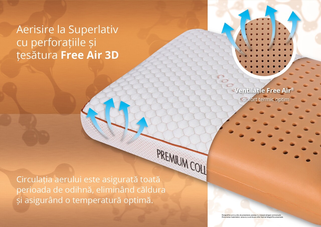 Ventilatie: sistemul de perforatii impreuna cu tesatura Free Air® 3D ajuta la mentinerea unui mediu uscat, fara mirosuri si acarieni.