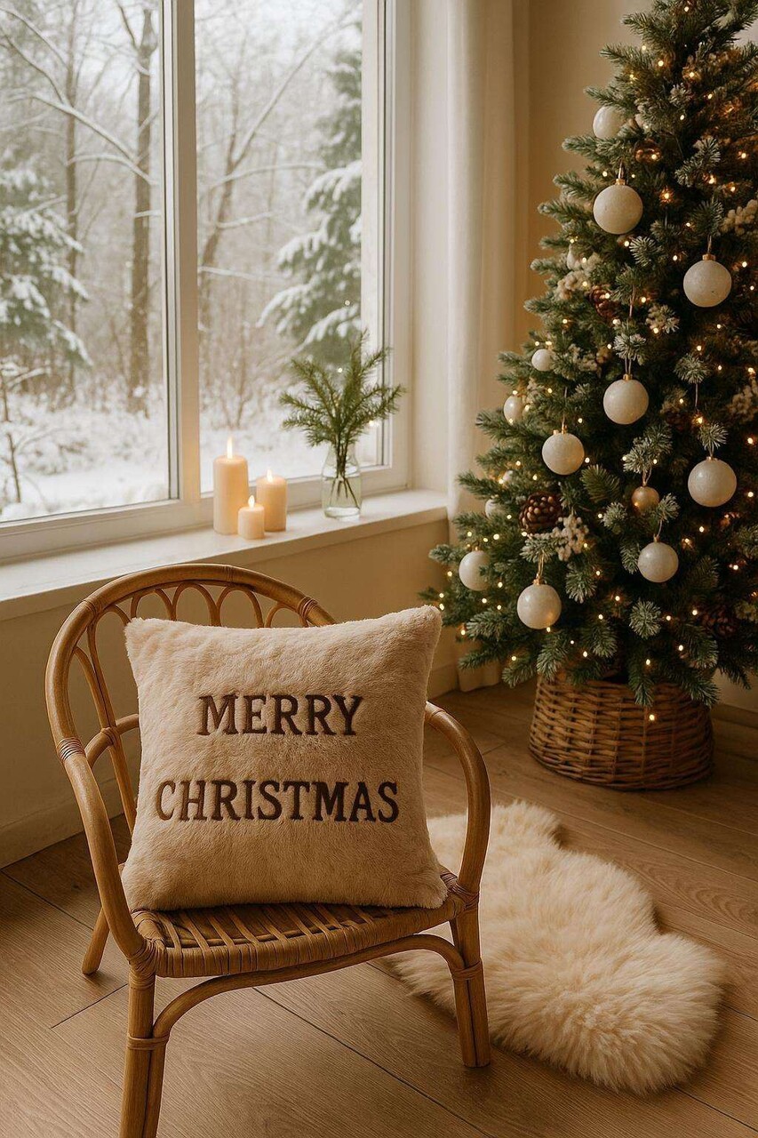 Perna, Merry Christmas, 43x43 cm, Poliester, Bej