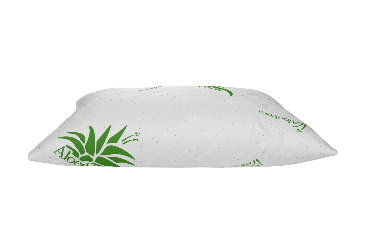 Perna matlasata ultrasonic Aloe Vera cu fermitate medie si umplutura din puf siliconic, este potrivita pentru dormit pe spate, pe lateral sau pe stomac.