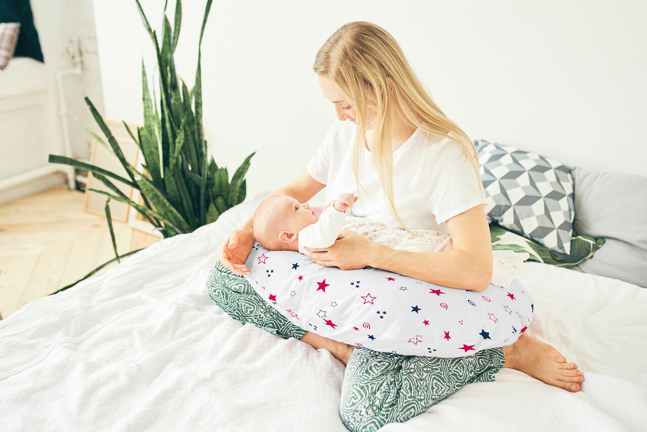 Perna in forma de colac ofera o pozitie confortabila in timpul alaptarii atat pentru mama cat si pentru copil