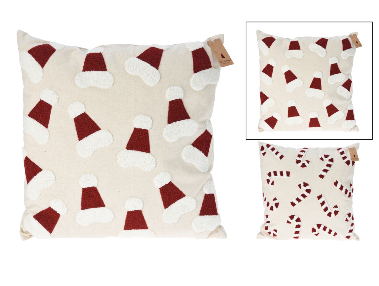 Perna pentru scaun Santa Hat v1, Excellent Houseware, 45x45 cm, poliester, bej/rosu