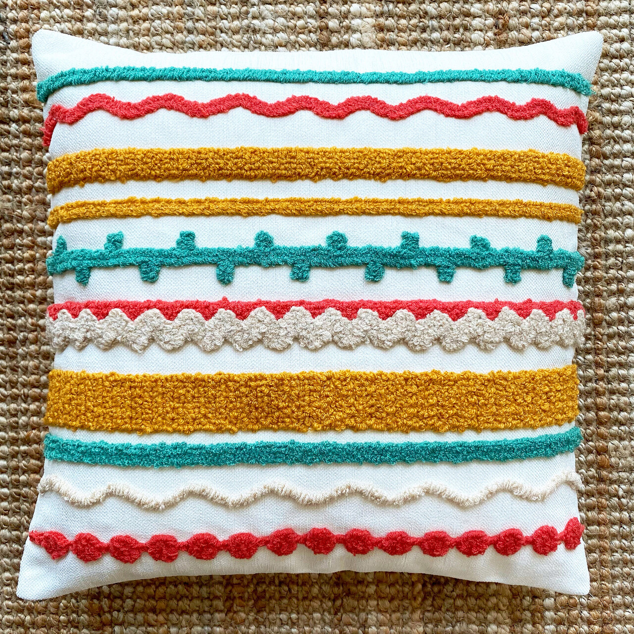 Perna, Rayas, 43x43 cm, Material: 20% in, 80% poliester, Coral închis / Verde / Muștar / Galben