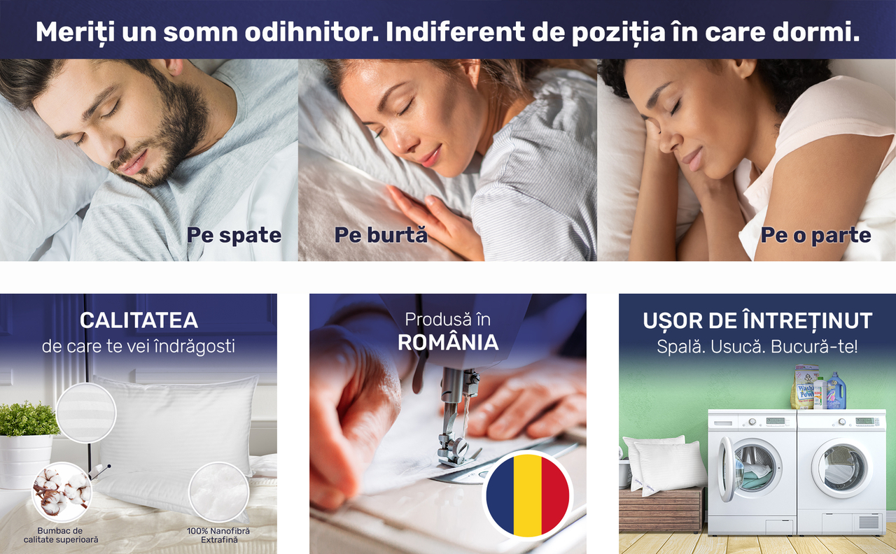 PRODUSA IN ROMANIA: Pernele Stripes Essience Premium Collection sunt create și produse în Romania, folosind materiale de calitate superioara pentru a asigura cea mai bună experiență de dormit.