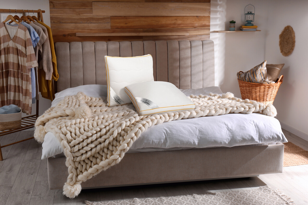Conținutul noului model de pernă Wool nu se aglomerează, având elasticitate constantă pe toată suprafața, ca tu să te bucuri de un somn confortabil.