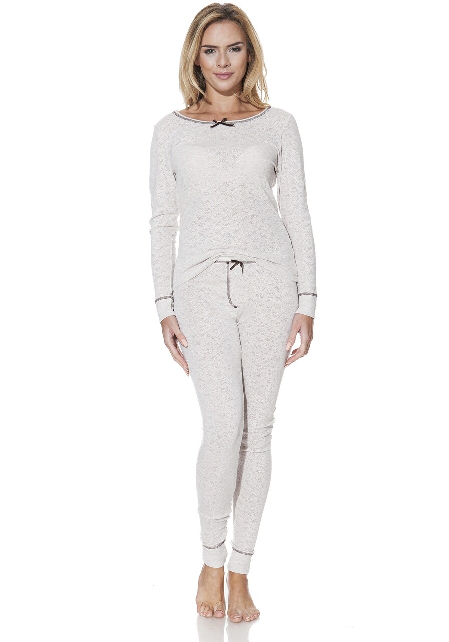 Pijama cu pantaloni lungi dama, Luisa Moretti, LMS-2023, bumbac/poliester, natural, marimea 42/44 - L