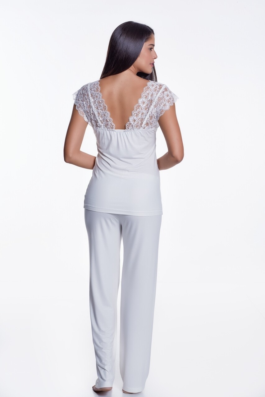 Pijama cu pantaloni lungi dama, Luisa Moretti, LMS-4036, 100% bambus, crem, marimea 46/48 - XL