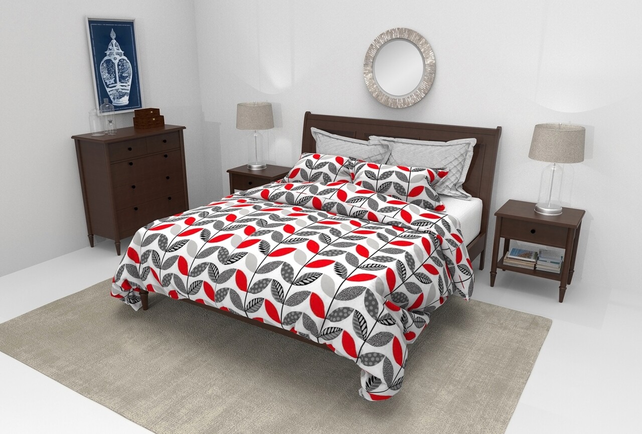 Pilota Alcam Red Leaves, microfibra matlasata, 250g/mp, 200x220 cm