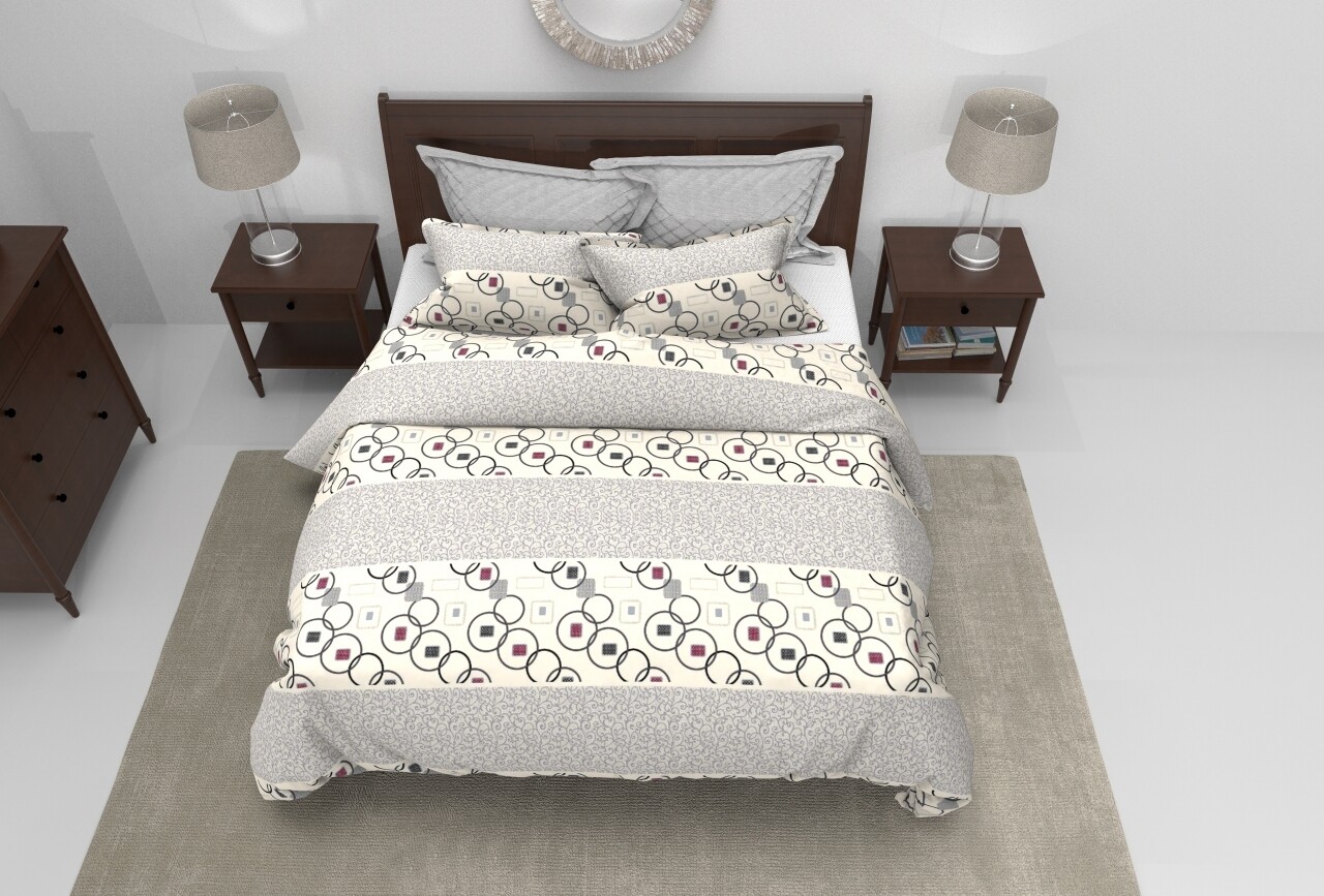 Imprimeul in nuante bogate aduce o nota deosebita dormitorului.