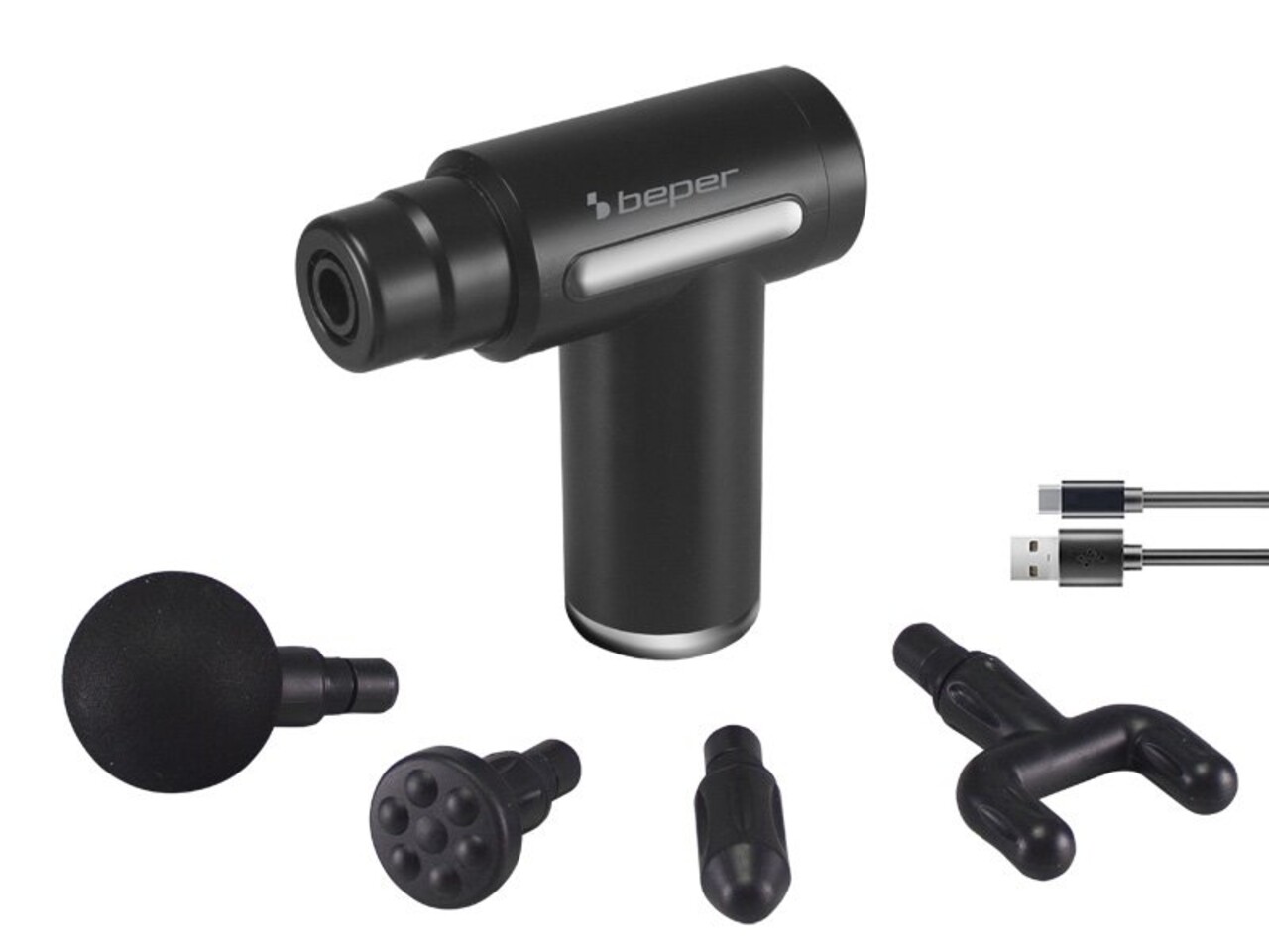 Pistol de masaj Beper, 30W, 3700 RPM, 6 trepte de intensitate, 13x5x13 cm, negru